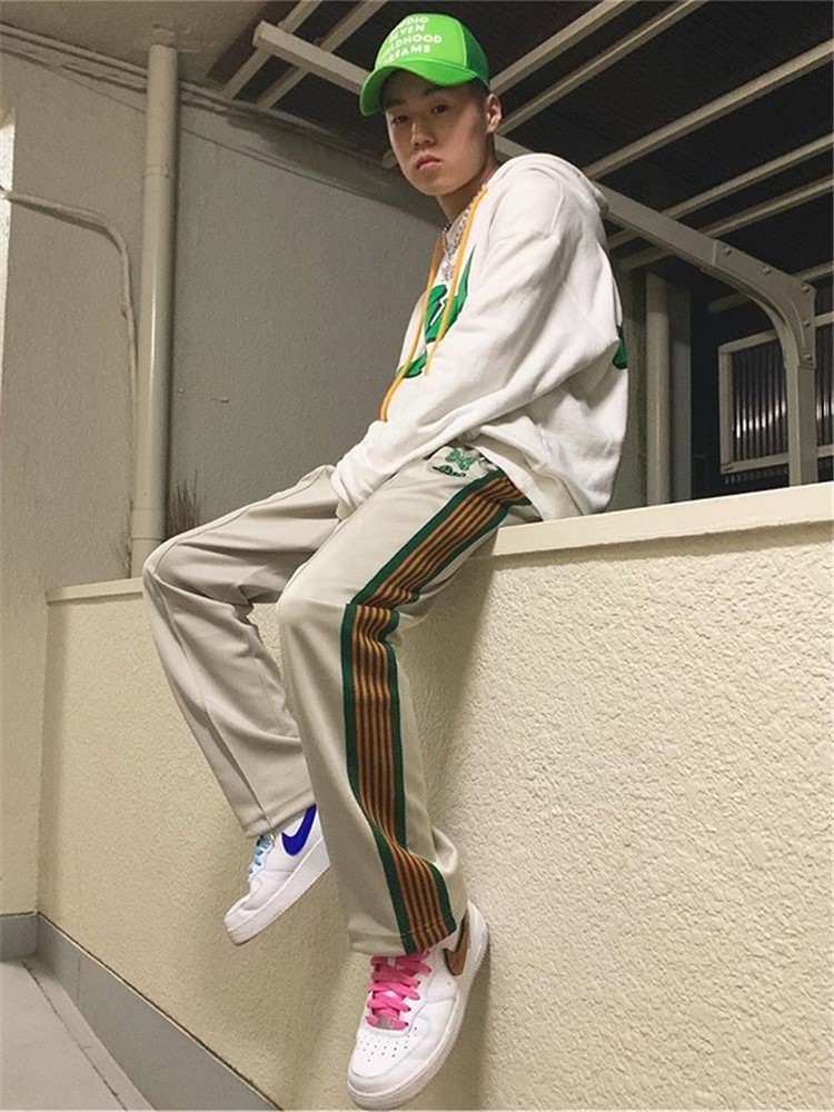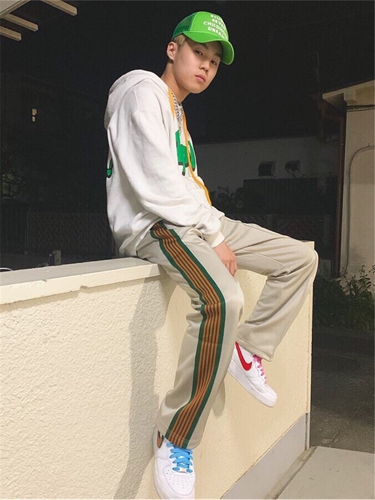 休闲裤来自于英国街头品牌,裤身以黑色为主色调,辅以黑色的织带装饰,更显时尚潮流裤身的大面积的蝴蝶印花,增添了几分街头感。