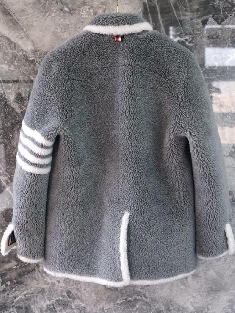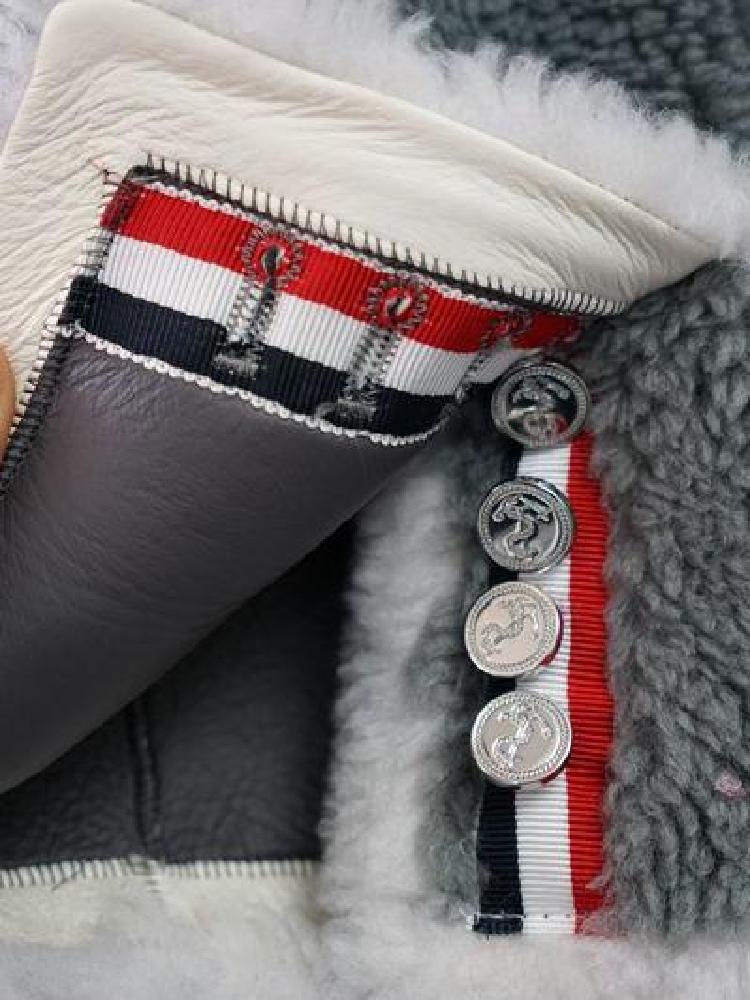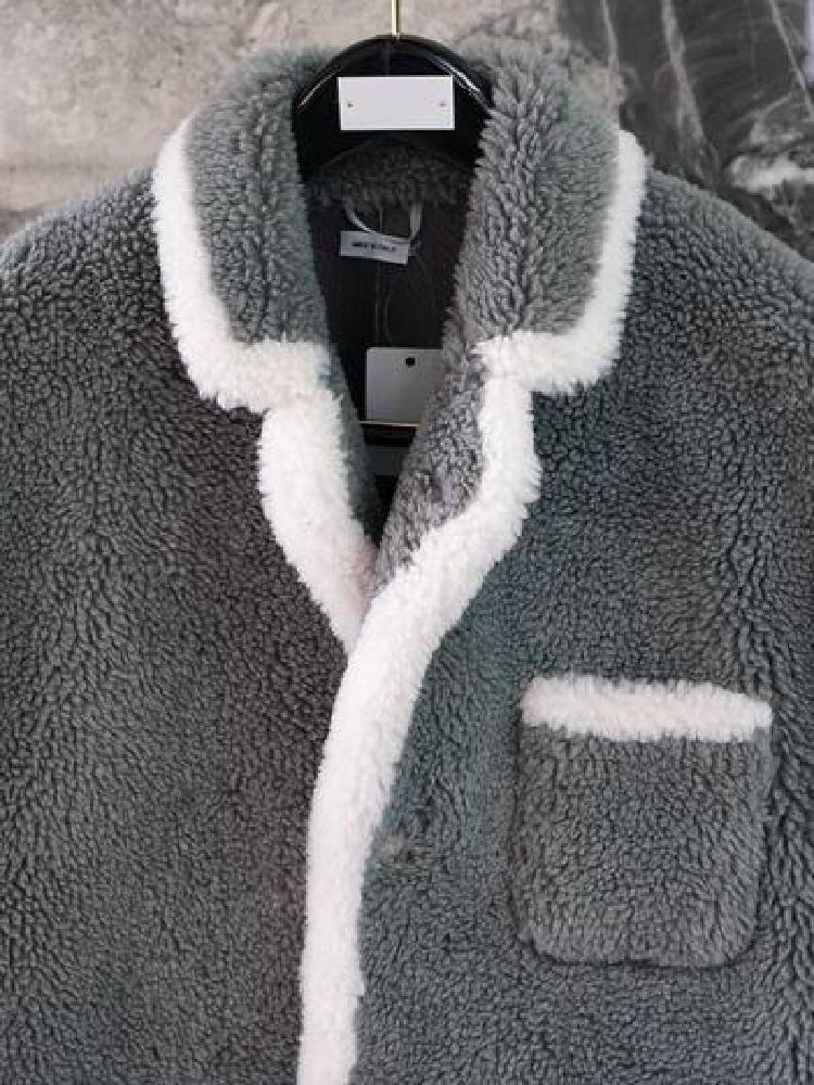 采用的是皮毛一体设计的外套,大翻领的领口造型设计,完美地衬托出你的脸型来,内里是拼接羊羔毛的材质,舒适又保暖;经典的双排扣设计,使你在温柔中又不失英伦的气质,整体是宽松的廓形剪裁,上身之后是自带气场的感觉。