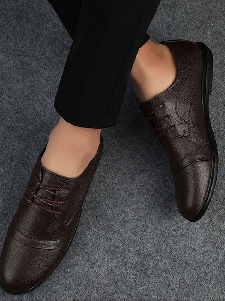 典雅稳重的棕色低帮牛皮鞋,鞋面采用头层牛皮,内里加绒或猪皮内里设计,穿着保暖透气,轻盈舒适,搭配橡胶鞋底,防滑耐磨,给你舒适的行走体验。
