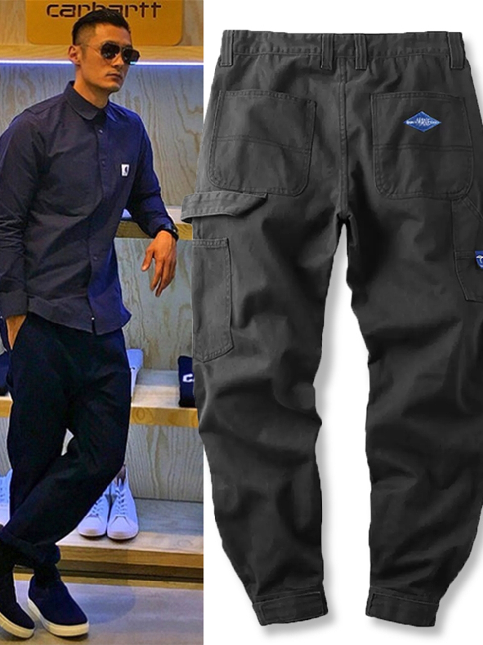 原创立体贴口袋,版型和细节都非常到位 面料是纯棉的,美式复古,裤脚褶皱踩线,非常新颖,立体感超强。