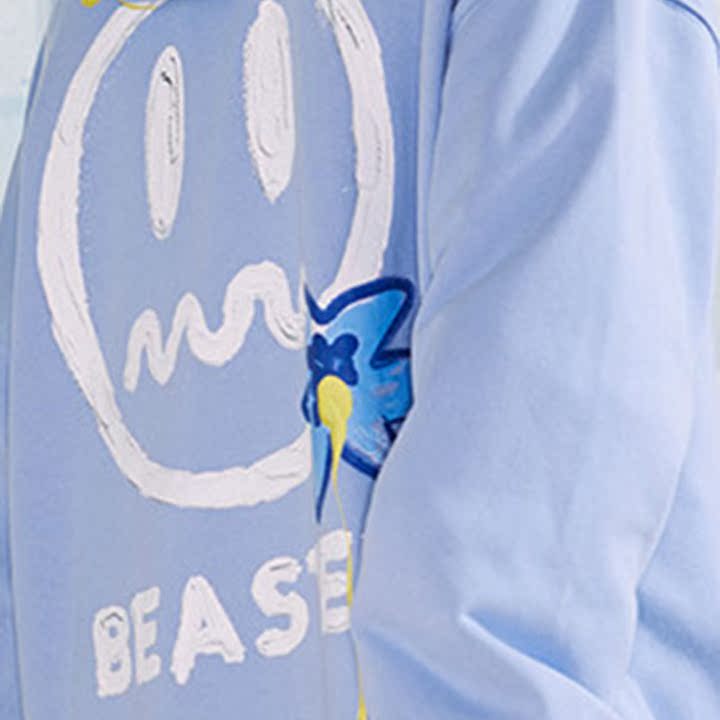 选用高克重抓绒面料,亲肤舒适,触感软糯,保暖性强。连帽抽绳,上身慵懶随意。三段式线条分割设计,极简设计,潮流前卫。字母装饰,前胸LAUGHING印花,呼应品牌主旨,希望大家可以天天都开心。红白蓝经典配色,个性潮流,为整体增加亮点。衣摆罗纹组织收口,防风保暖。