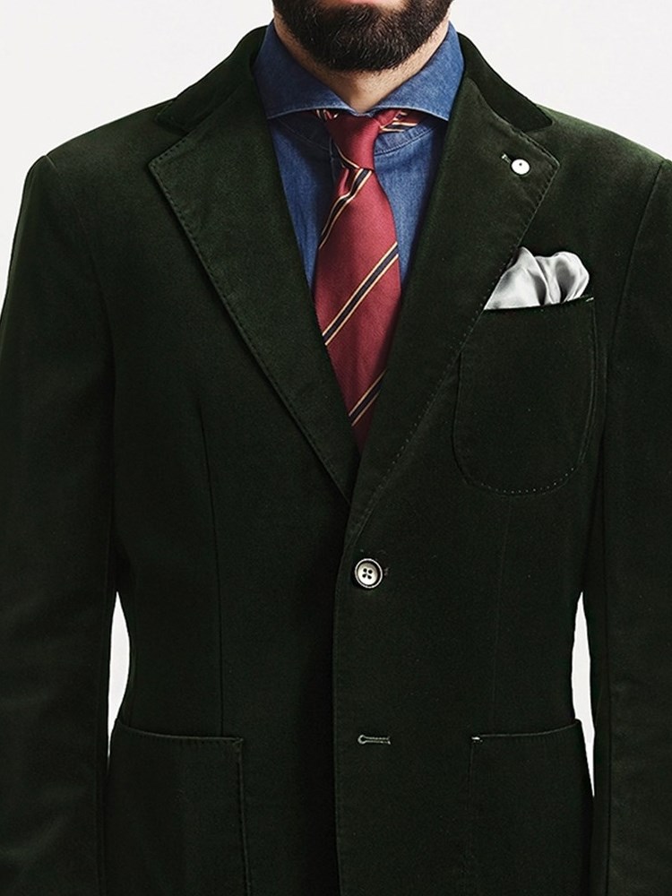 这款西装外套采用了经典的西装翻领,搭配上精致的丝绒面料,上身效果非常的棒,搭配上一款黑色的西裤,就能轻松驾驭,搭配上一条牛仔裤,就能轻松驾驭。