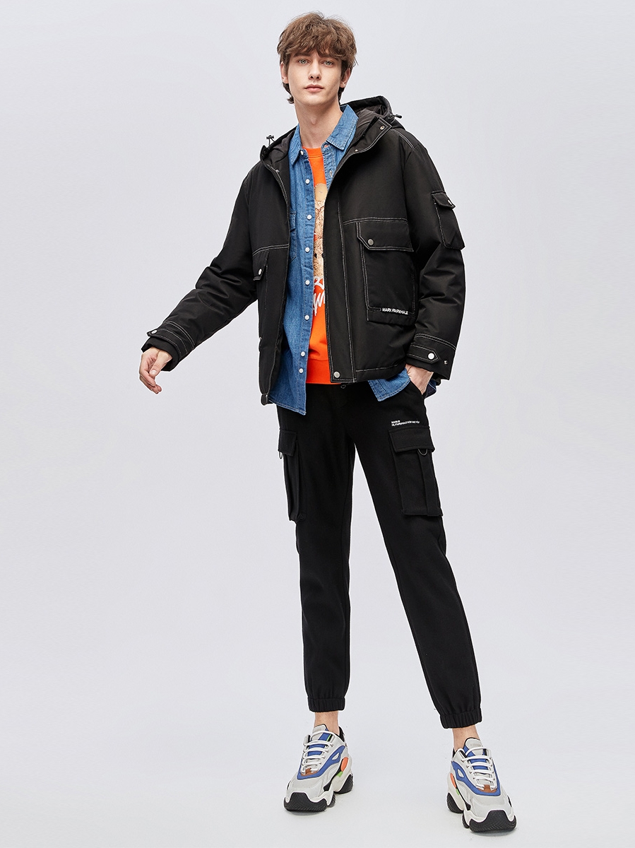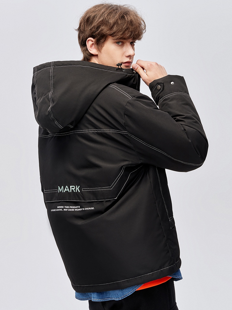 外观设计主打简约稳重的黑色,点缀上个性的白色线条和印花,就展现出了时尚青春风格。填充了优质鸭绒的羽绒服在冬天里穿着更加温暖,连帽设计更富有包裹感。