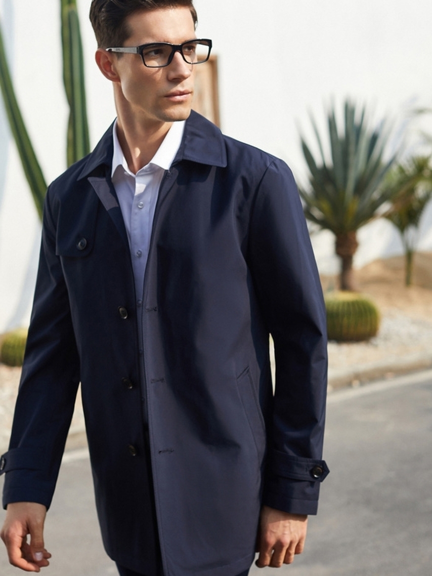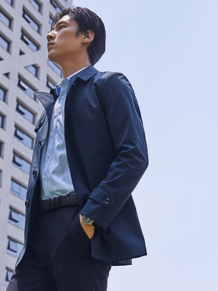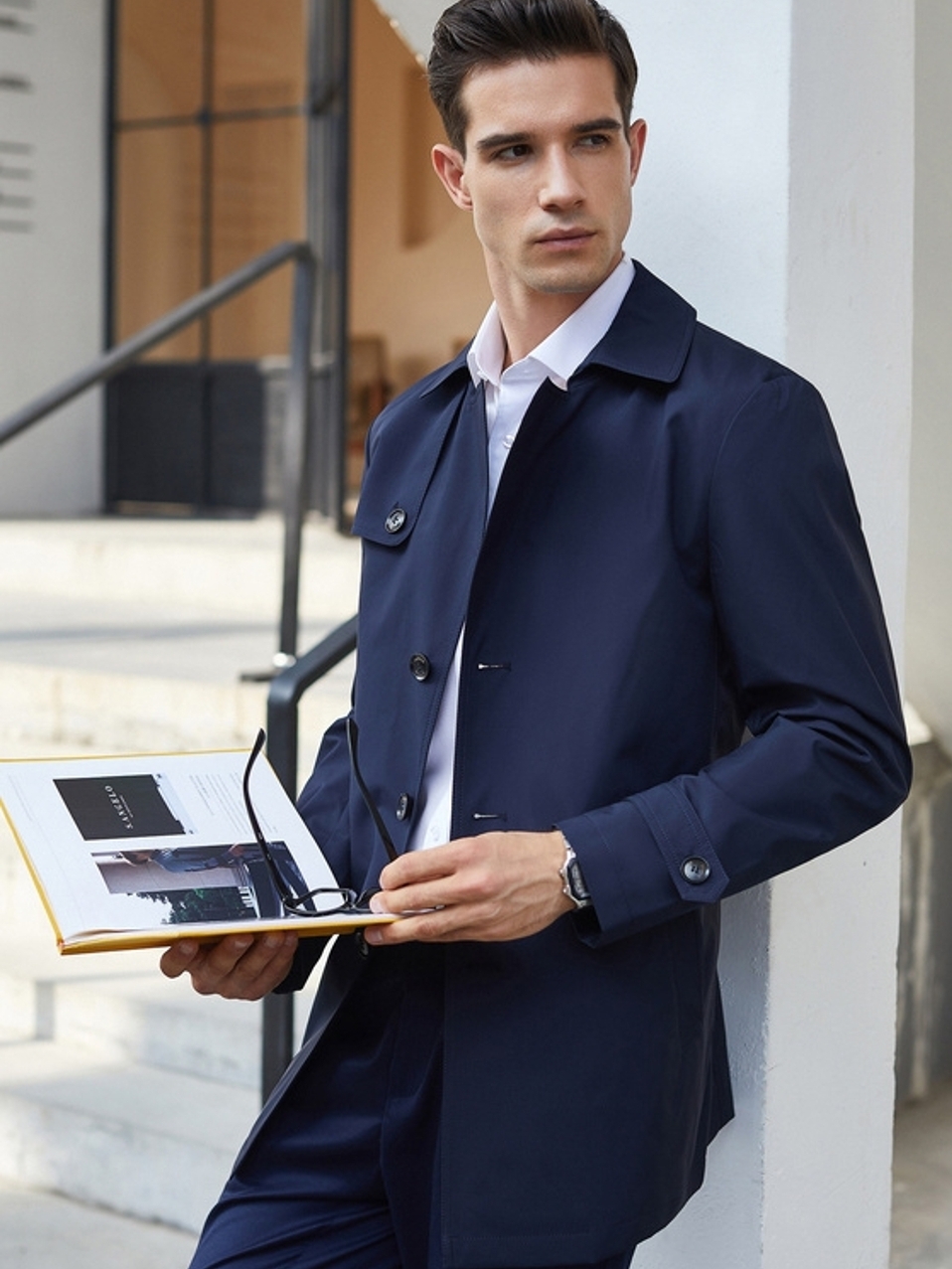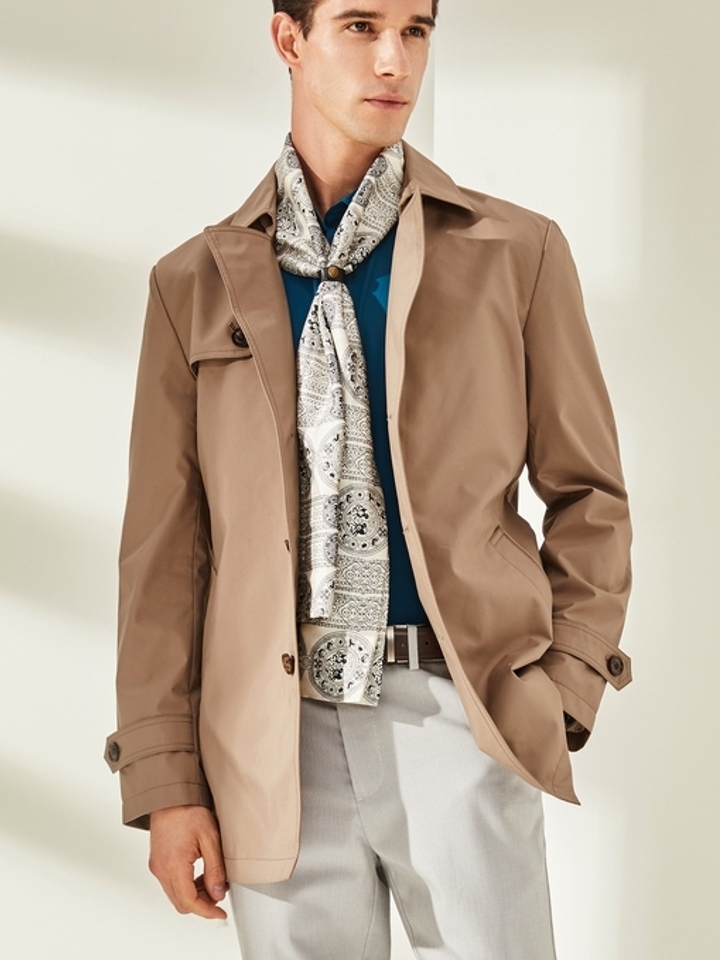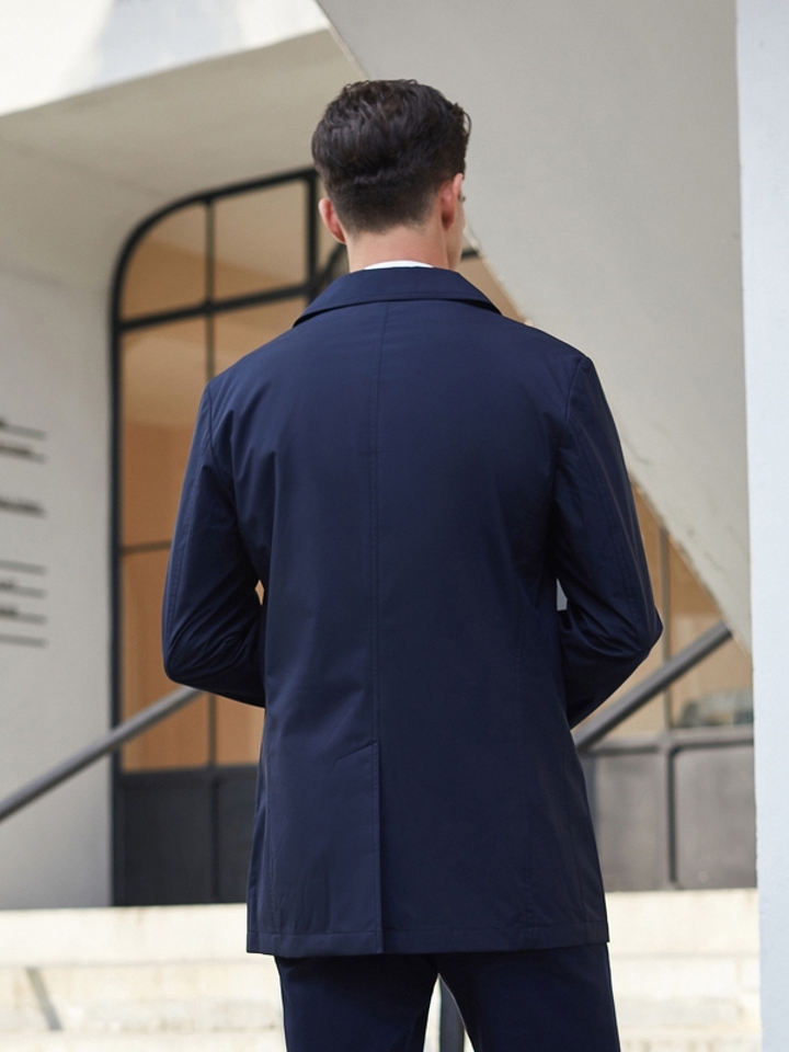 轻便有型的精致面料带来适中的温度与潇洒的风度,整齐有型的西服翻领加上精美的单排扣细节,继承了正统英式休闲西服特色,细腻的明缉线与修身的款式无一不是对高标准做工要求的表达。