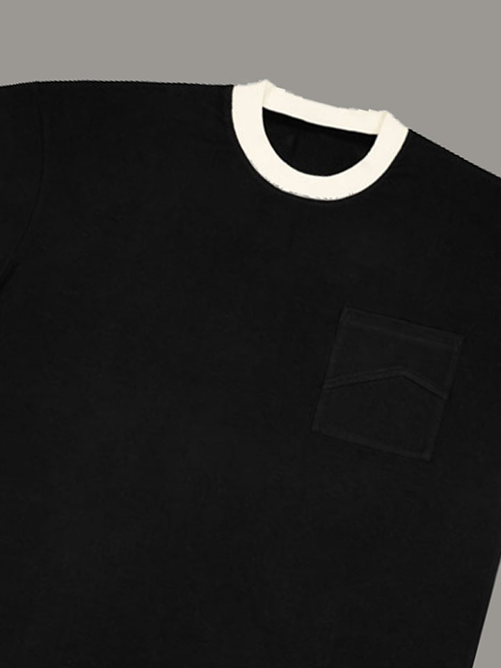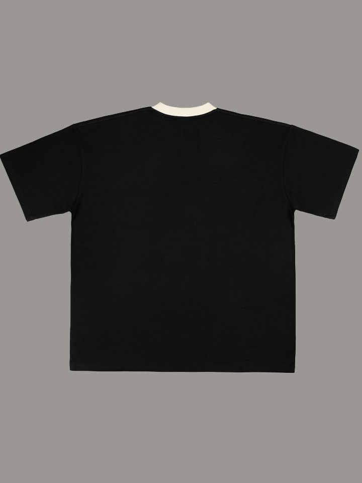 这款T恤休闲风格,黑色百搭时尚,宽松版型。