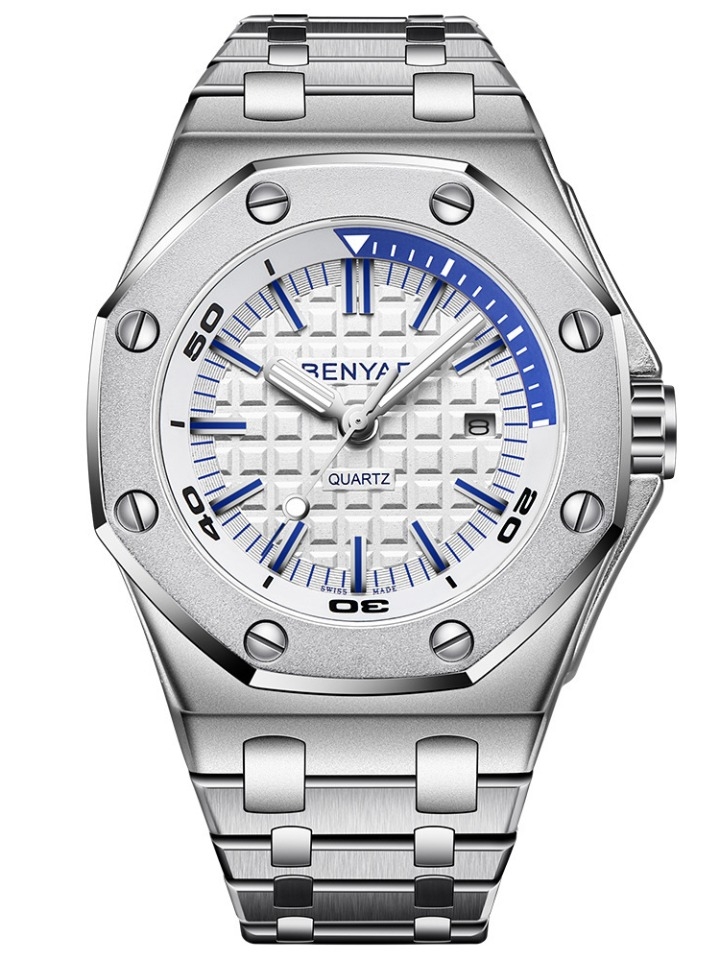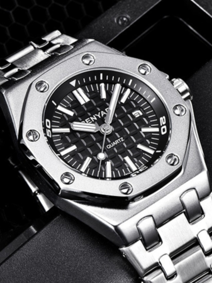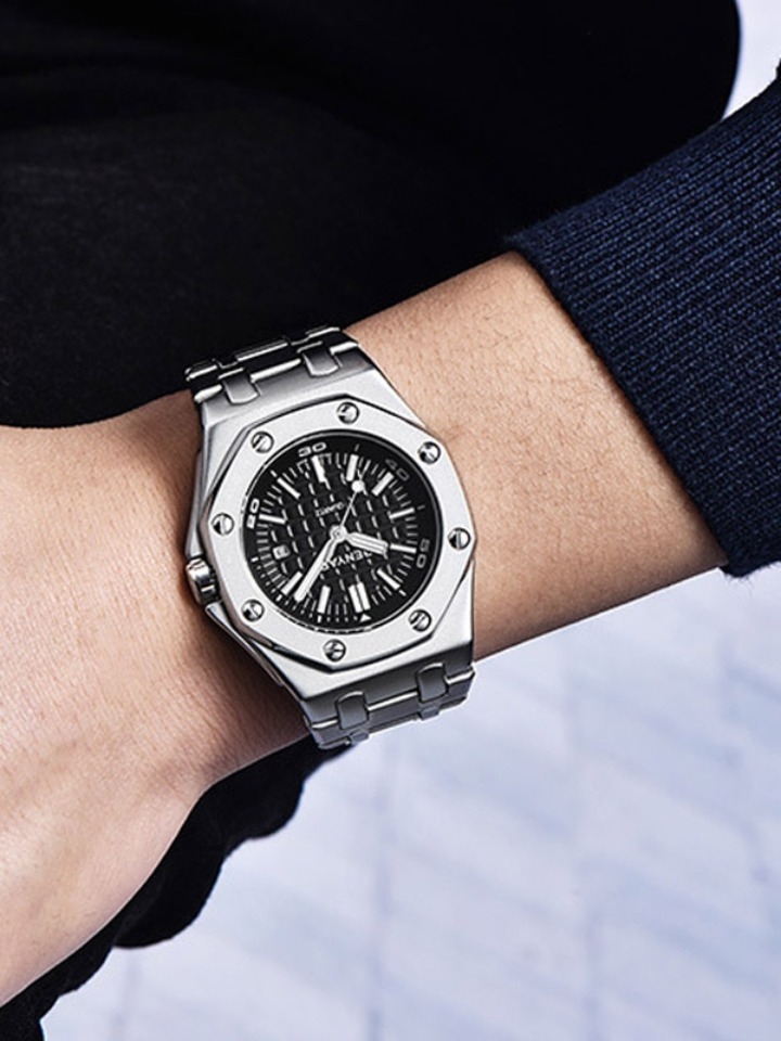 采用八颗抛光精钢六角形螺丝固定大胆创意。采用瑞士精选全自动机械表芯,耐用高级。