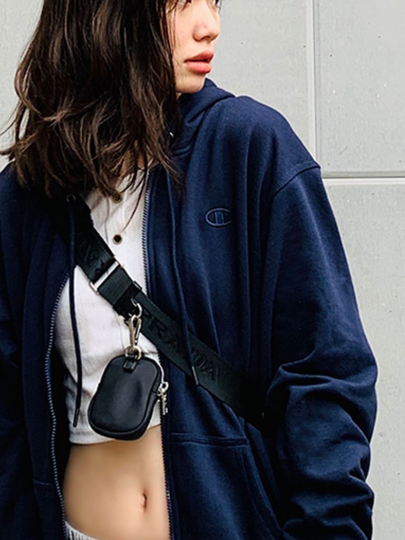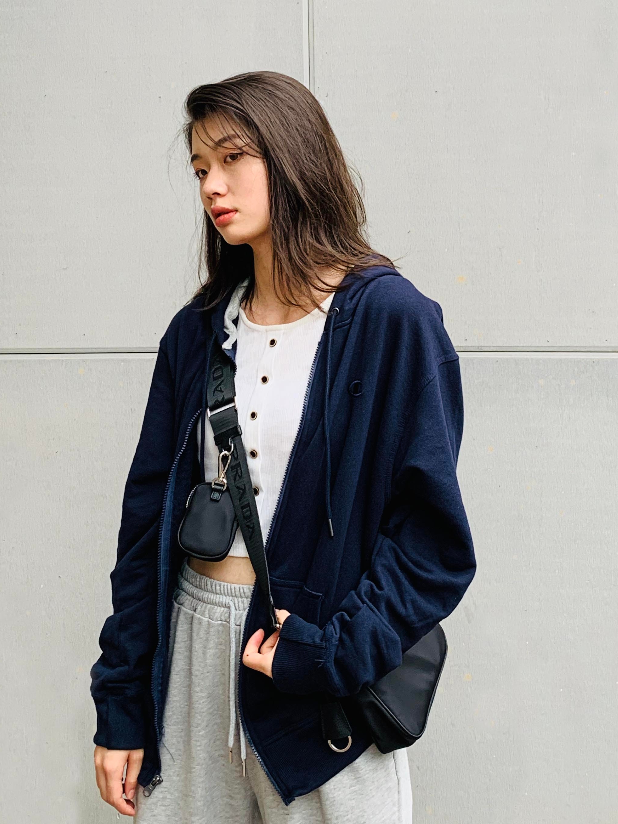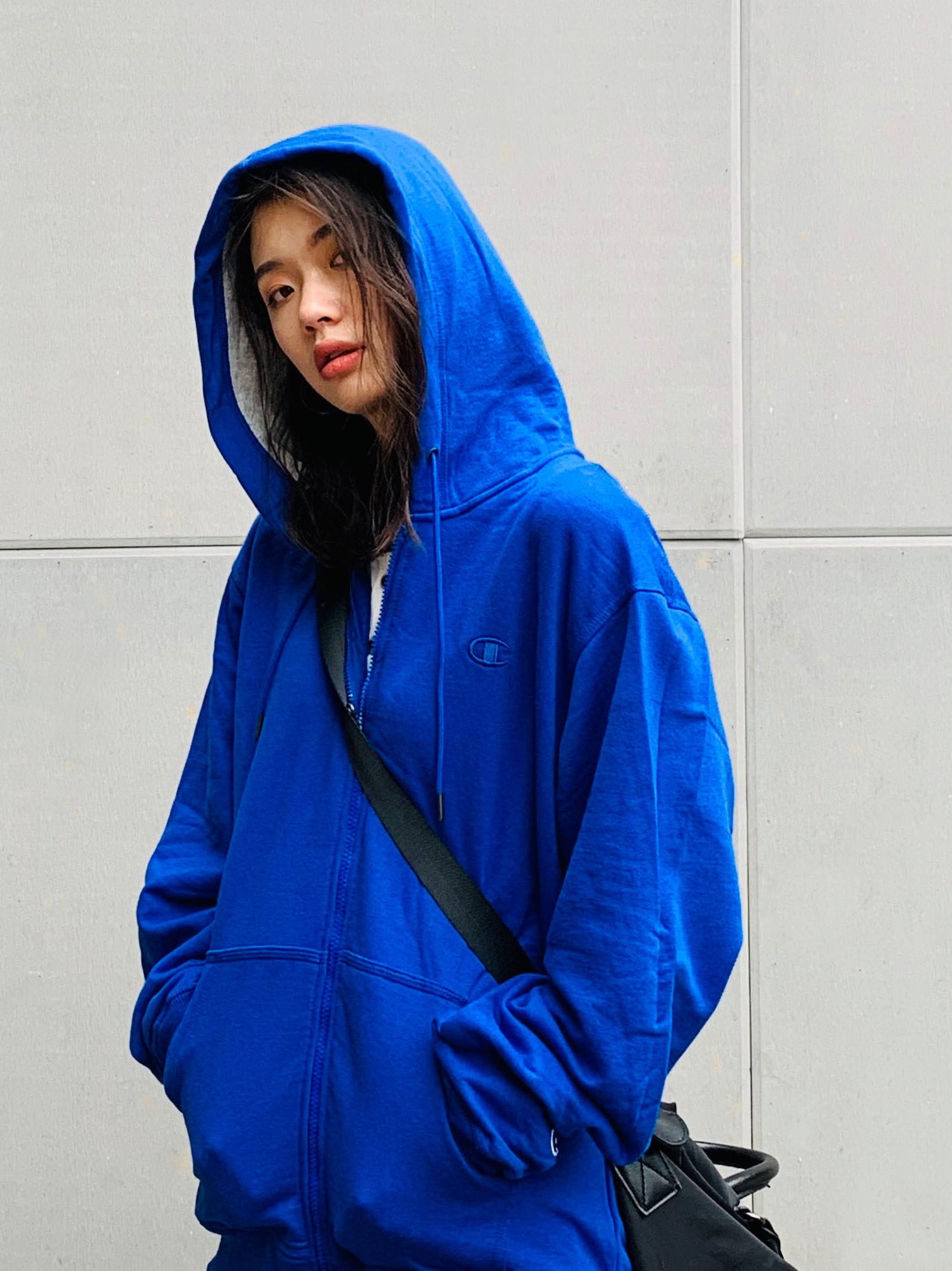 连帽款卫衣,门禁采用撞色拉链设计,舒适方便,与抽绳的颜色相呼应,简约的纯色衣身,休闲百搭。两边的斜插口袋兼具了时尚性与实用性。下摆抽绳设计,可以自由调节,让穿着更有型。胸口简约的字母刺绣,点缀时尚。