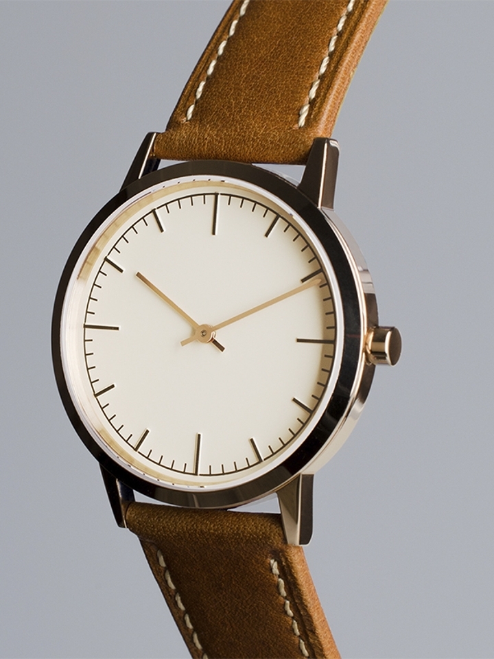 Parallel Watches是小众的手表品牌,在最近几年流行北欧极简风时才开始被大家熟知。这款真皮表带手表有着品牌一贯的简约美感。
