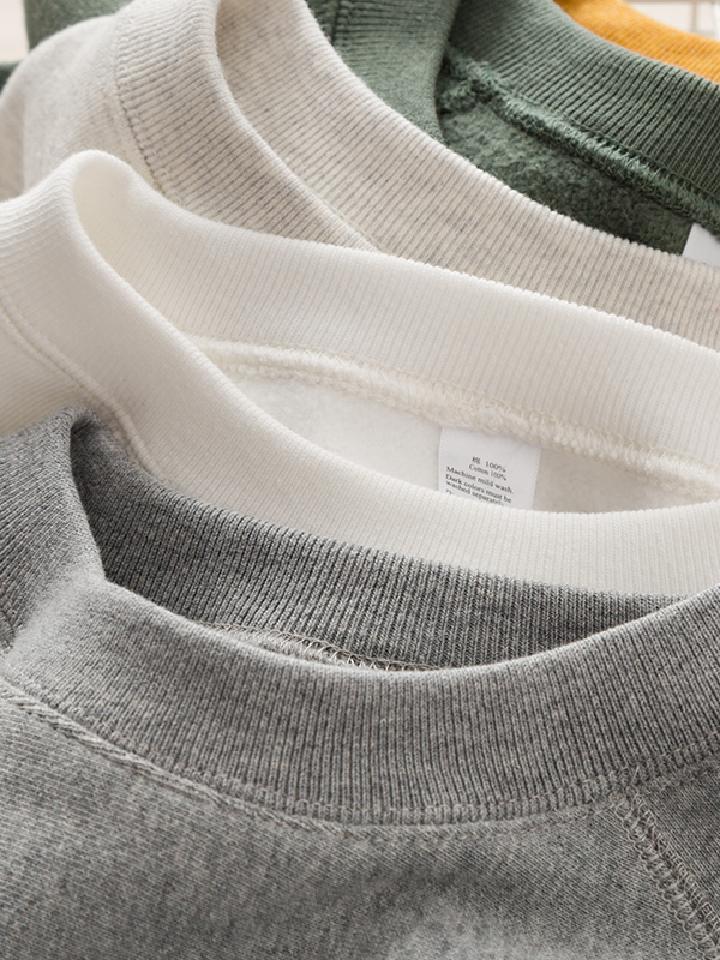 纯色系套头卫衣,圆领落肩袖设计,休闲大方;同色系异材质的大口袋设计撞出新层次,字母刺绣,不羁中体现精致。