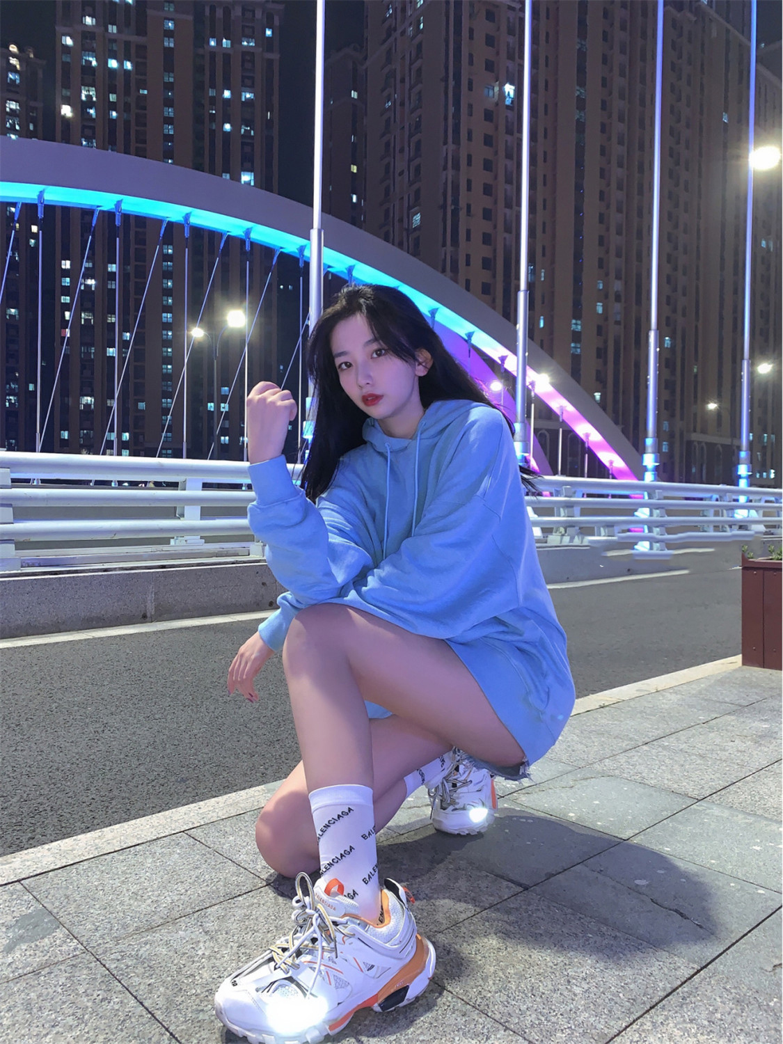 高腰的设计,拉长腿部线条,显瘦效果很好,高腰的版型,很显高挑,修身的剪裁,修饰腿部曲线,上身很有范。