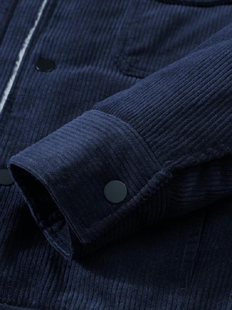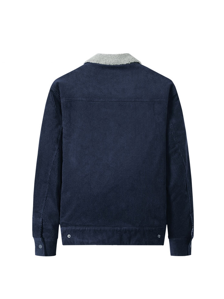 一款充满了复古风的夹克,简约的版型设计显得活力十足,灯芯绒温暖舒适,翻领加上复古的色系显得很有亮点,让人倾心。
