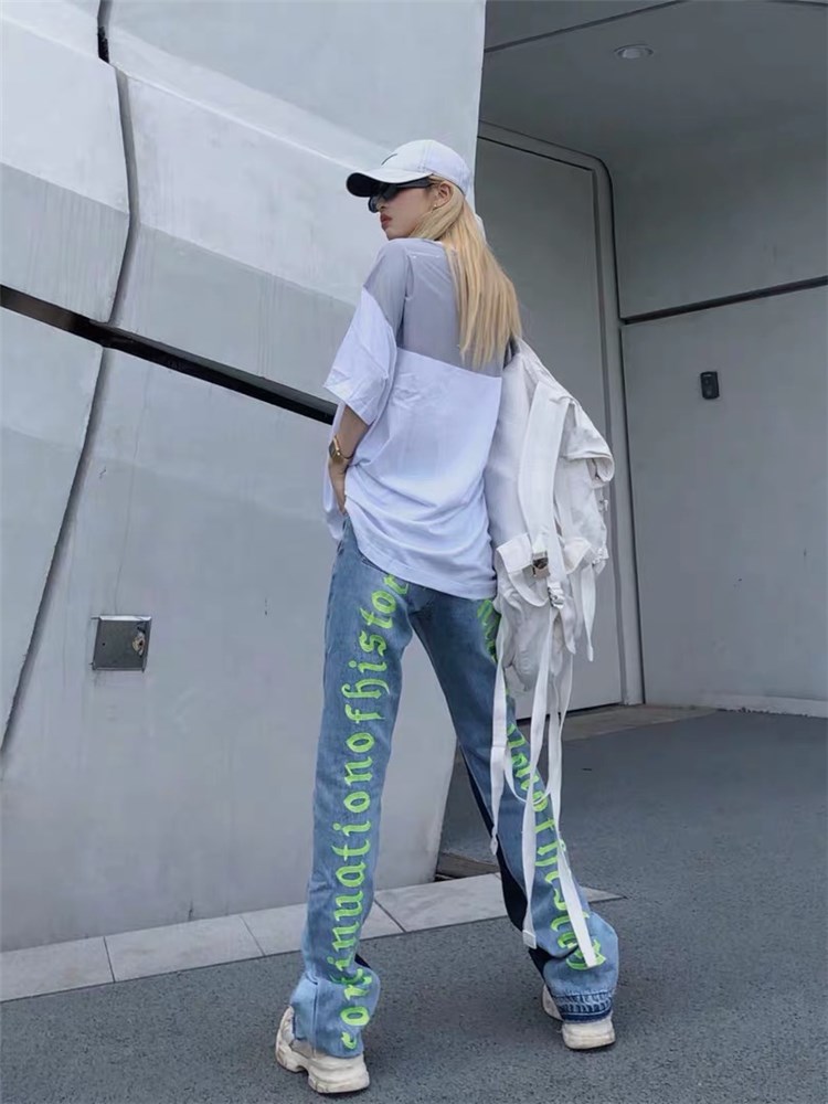 这款牛仔裤的设计很有特色,高腰的版型,很好的修饰了身材比例,显瘦效果很棒,搭配一件T恤,就能轻松穿出时尚感。