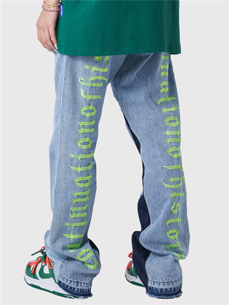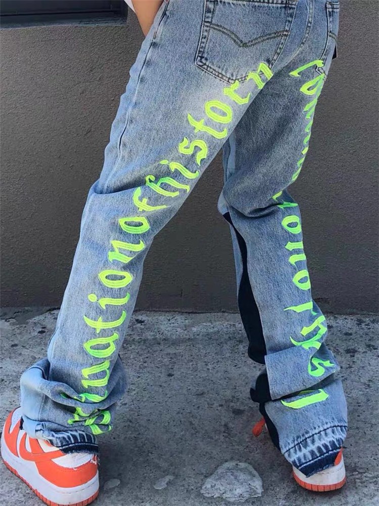 高腰设计,拉长身材比例。高腰牛仔裤,显瘦显腿长。直筒裤型,修饰腿部线条。