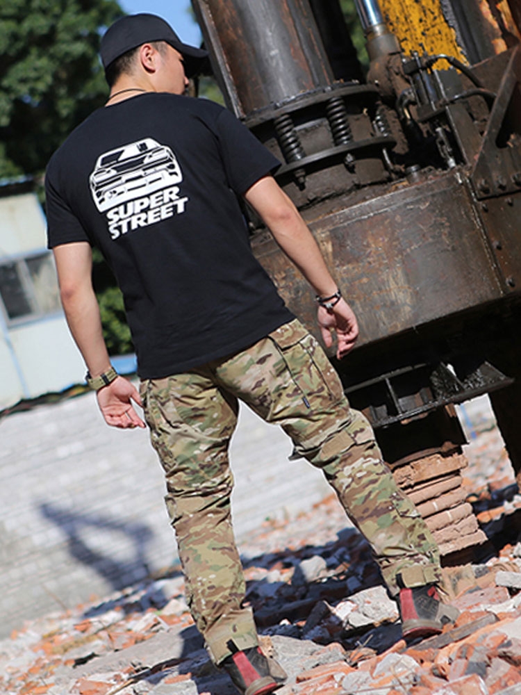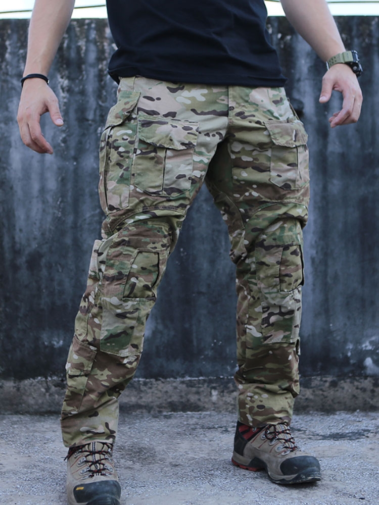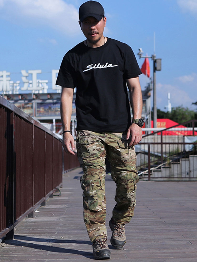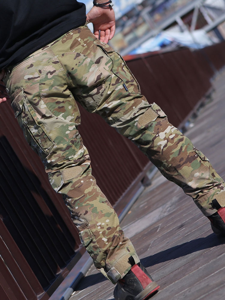 迷彩裤在运动性能方面,在需要拉伸的黄金位置增加了弹力设计,膝盖、后腰、裆部采用弹力材质拼接制成,大幅减少极限运动时对腿部造成的牵扯力。