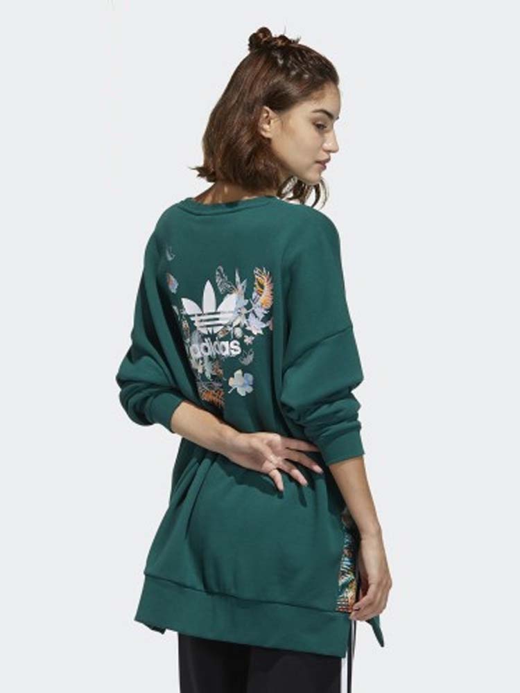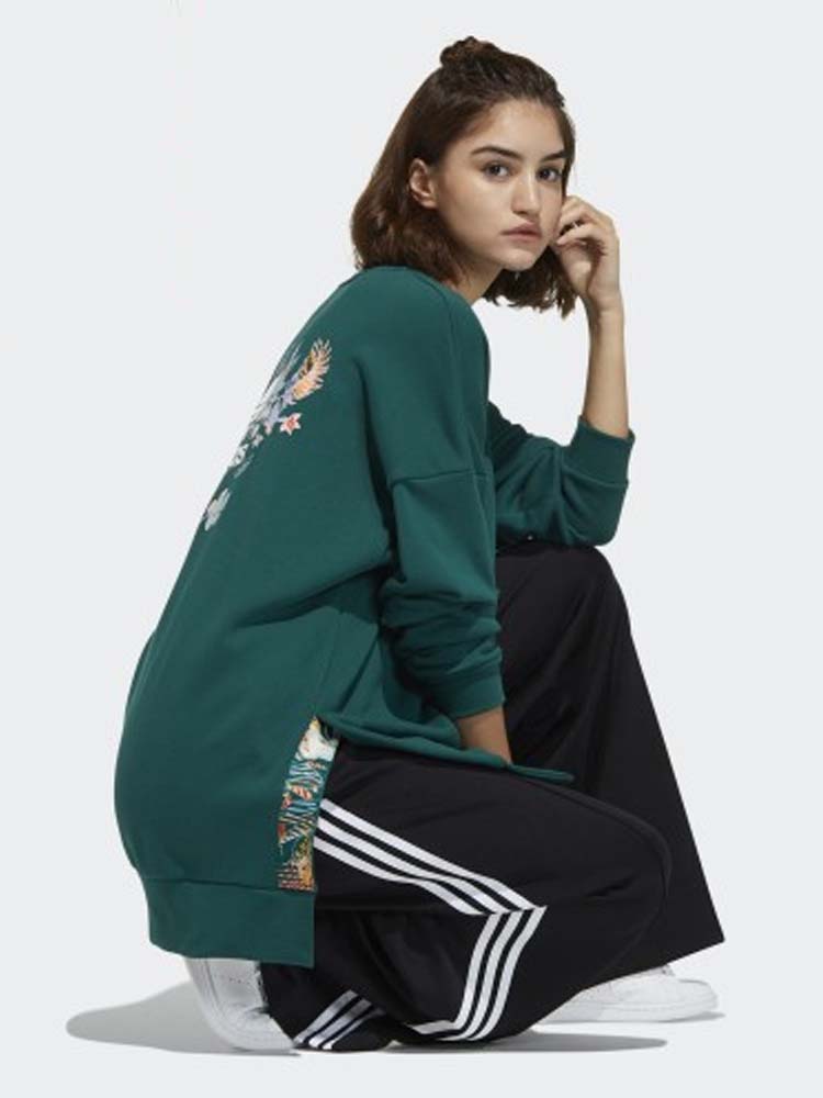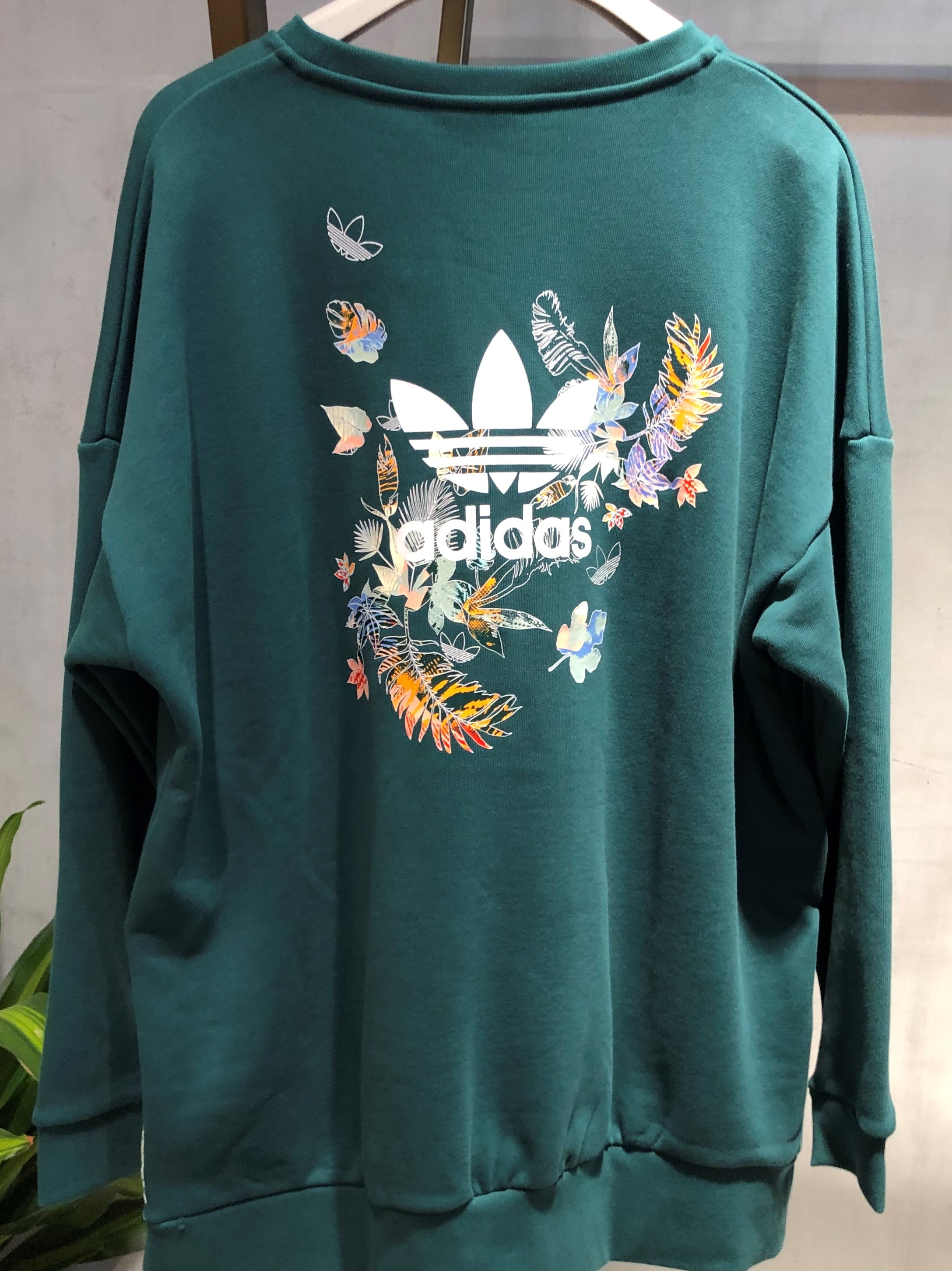 Adidas 运动套头衫不仅正面的精致logo点缀,搭配背面的印花图案元素点缀,带来出其不意的视觉效果。圆领设计,搭配宽松版型裁剪,遮肉显瘦,打造运动的舒适度。