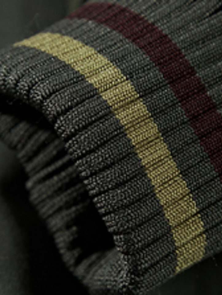 肩处撞色条纹的点缀,打破原本的单调,为整体带来更多的吸睛力,袖口处收紧的造型,紧贴手腕肌肤,能够起到更好的防风作用。