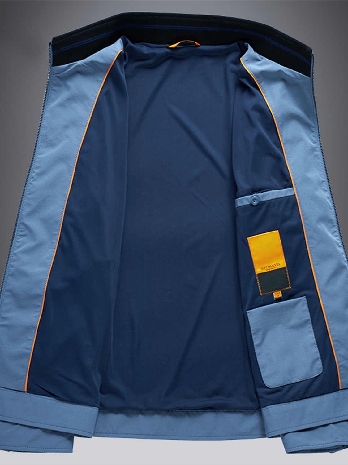 立领设计,袖口采用暗扣设计,方便舒适手腕,帅气时尚的同时又不失成熟稳重的商务气质。