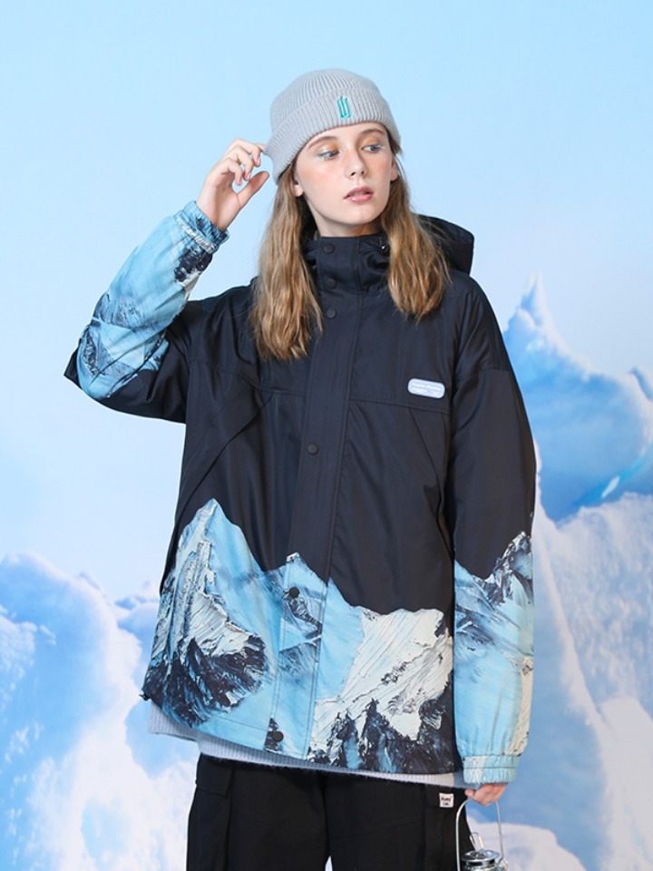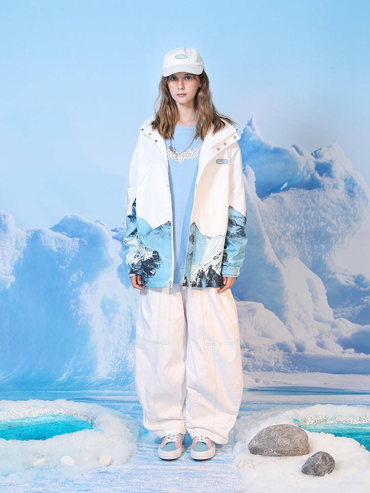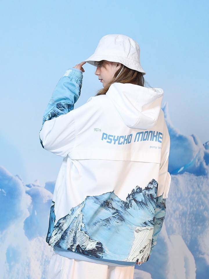 原创街头设计的国潮冲锋衣,融合了时下大热的雪山印花元素,大胆而亮眼的配色,设计感突出,亮眼吸睛;高品质的面料,带来了防水透气保温等众多功效。