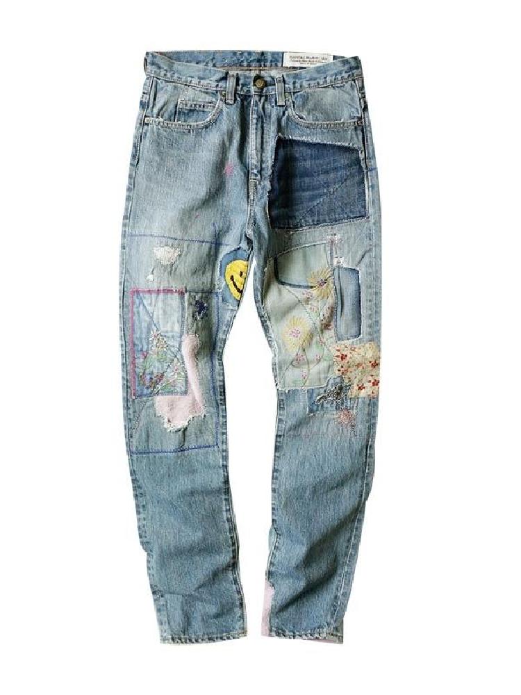 高街一族酷爱的破洞牛仔裤,不同的破洞程度彰显出不一样的潮流态度;此款深蓝色调牛仔裤,裤身加入了水洗磨白和破洞补丁等工艺处理,后袋的撞色拼接等