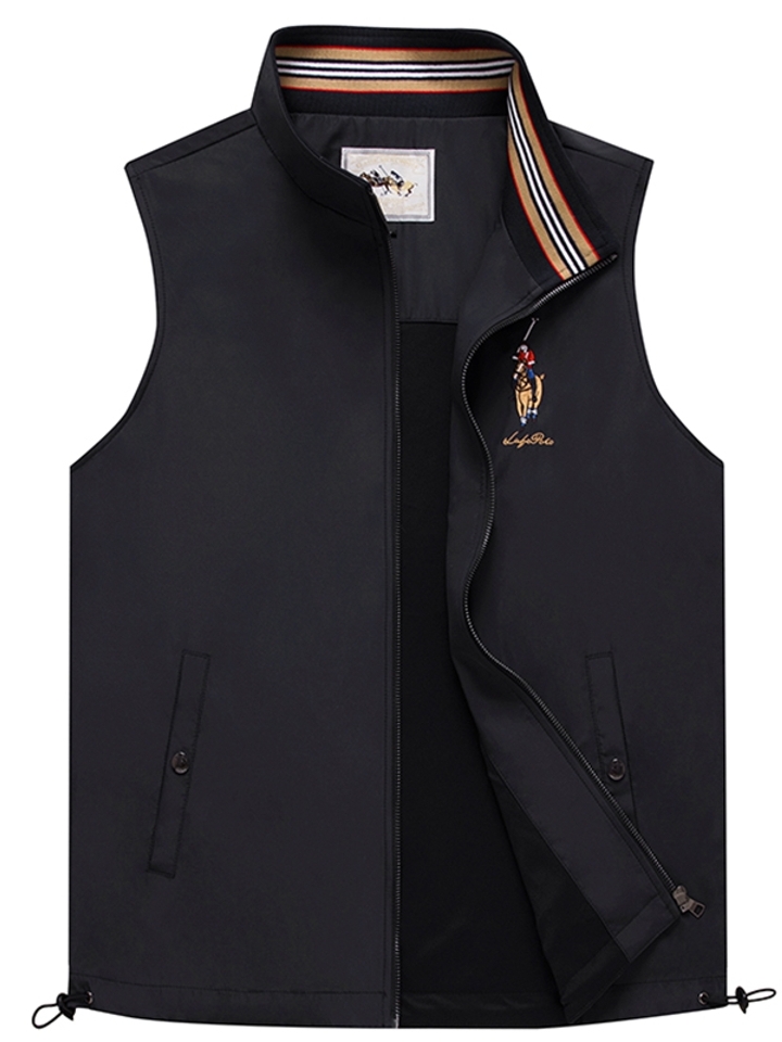 专为男士设计的一款马甲外套,简约大方的纯色系衣身,搭配什么内搭都很合适,非常适合春秋季节穿着。胸前融入精致的刺绣装饰,吸睛度满满,带出几分时尚气息。