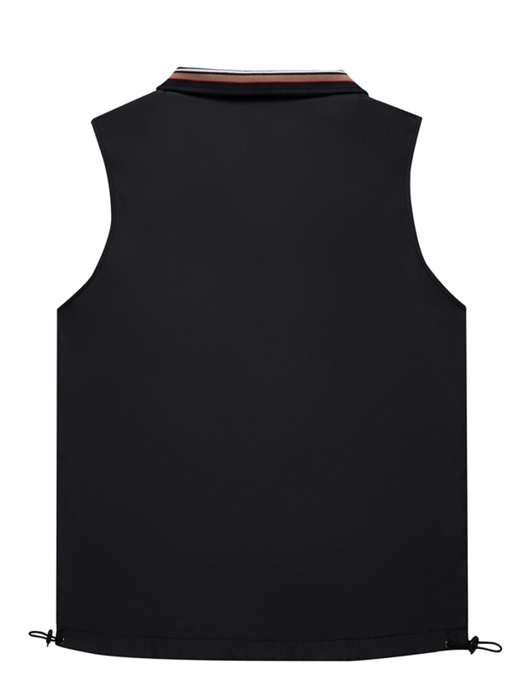 这款马甲外套采用立领的款式设计,可以很好的修饰颈部线条与脸型。开合顺畅的金属拉链,穿脱方便,搭配两侧的斜插口袋,便于置物,美观实用。