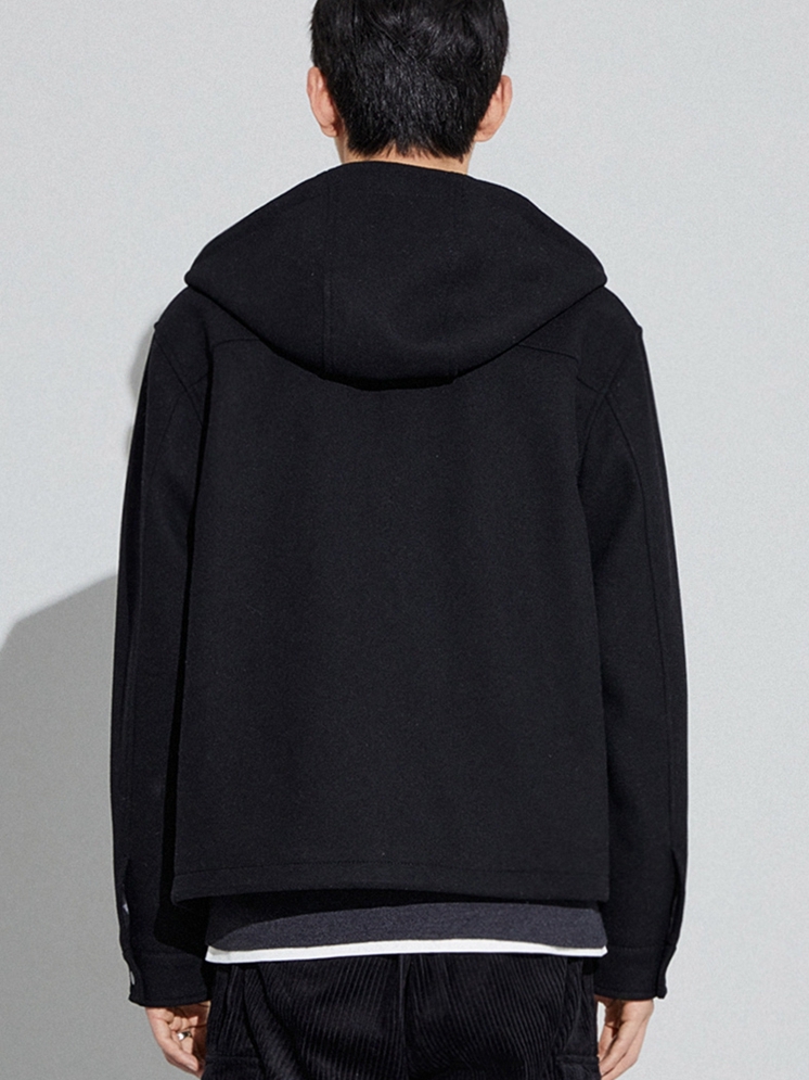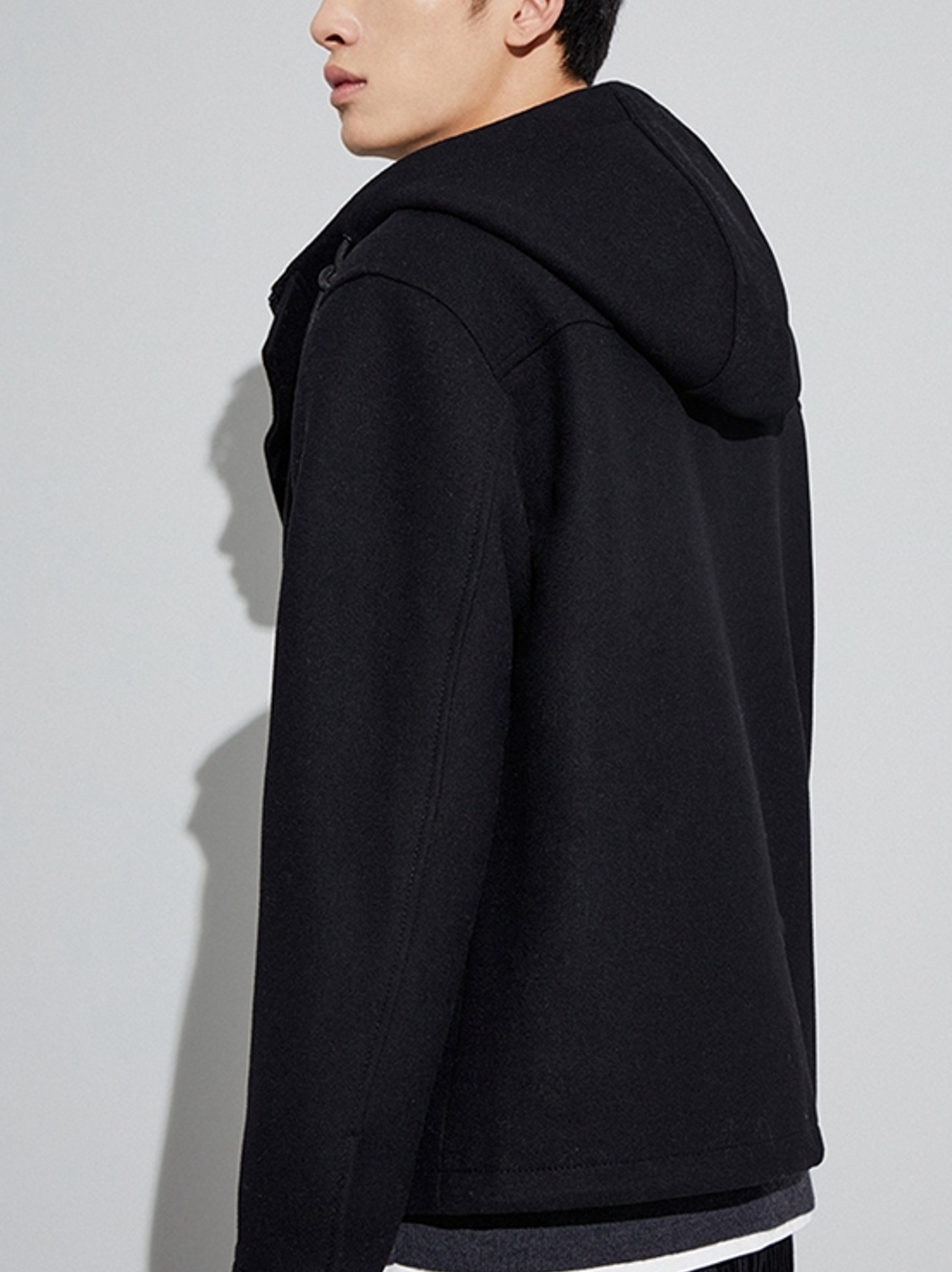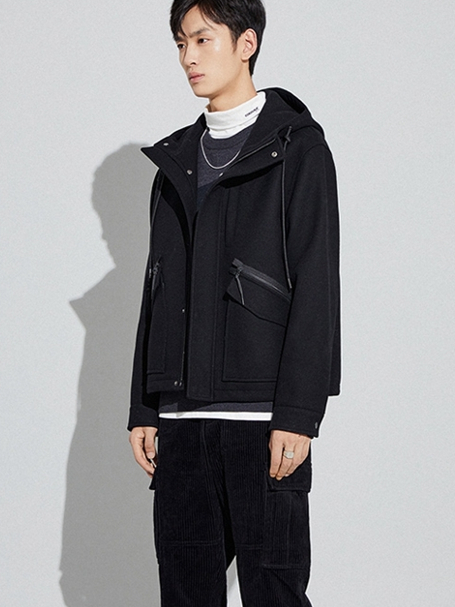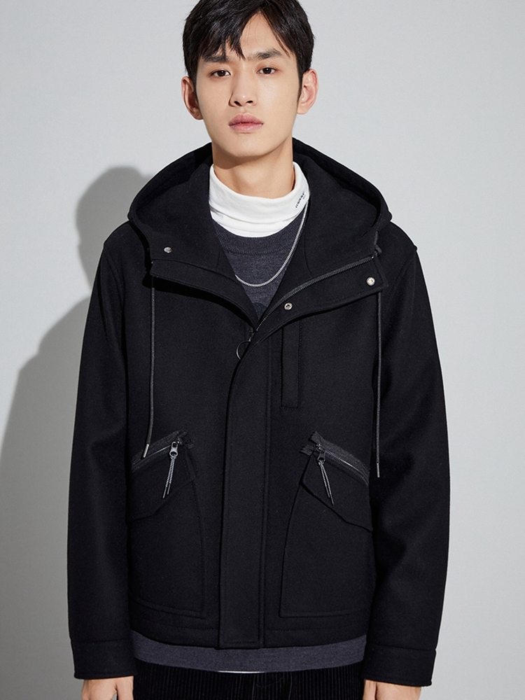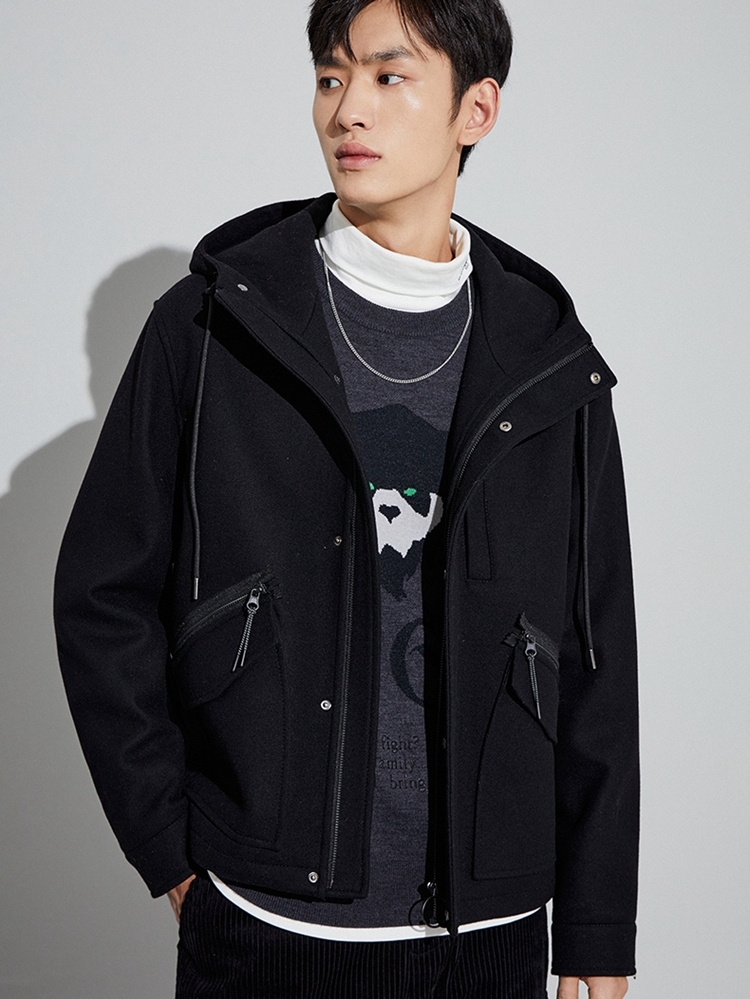 此款外套选用优质面料,含羊毛量较高,穿着舒适保暖有型,里面选用光滑细腻的丝绵内里,柔软舒适、亲肤保暖。身后连帽防风保暖,活力张扬。