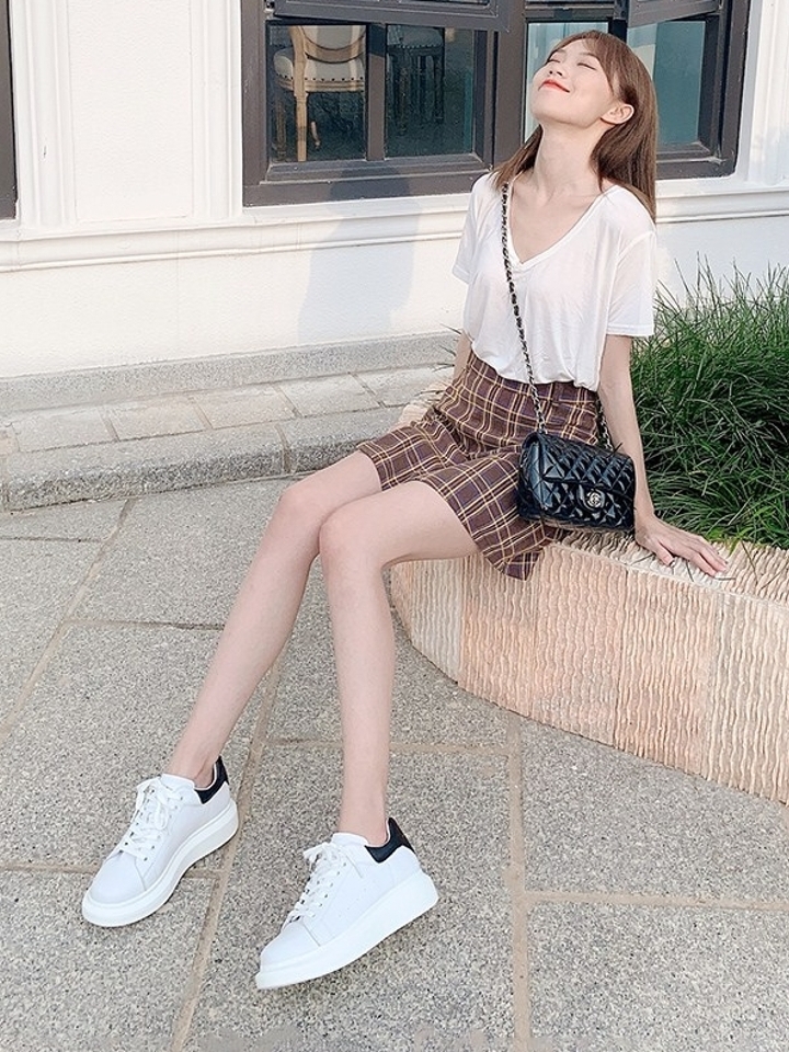 简约的高腰设计,搭配上修身的版型,上身显瘦又显高。