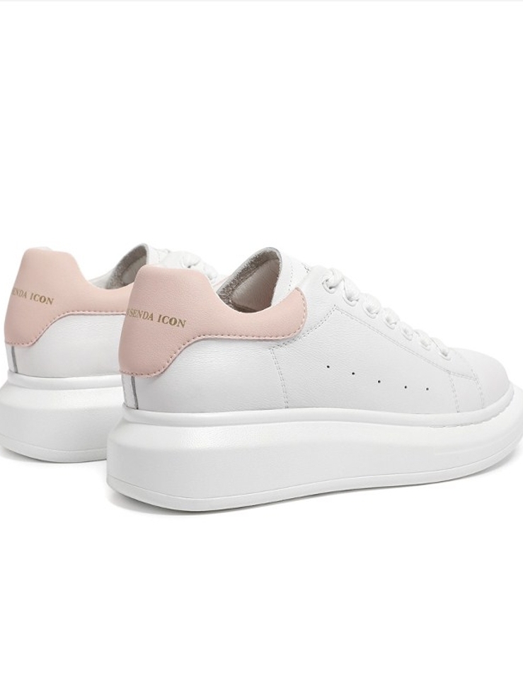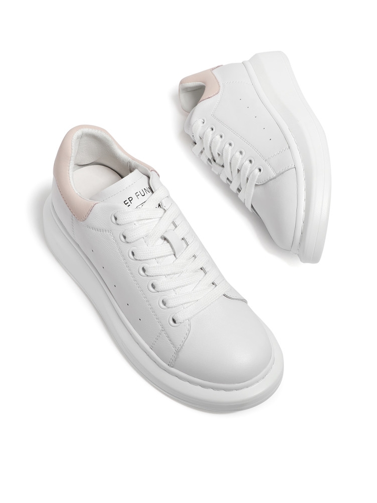 这款休闲鞋采用轻薄舒适的面料作为鞋面,透气性极佳,贴合脚型设计,正面的简洁系带的设计,方便穿脱,按摩鞋垫设计舒适减压,白色厚底设计平稳显高,整体造型展现高街潮流气息。