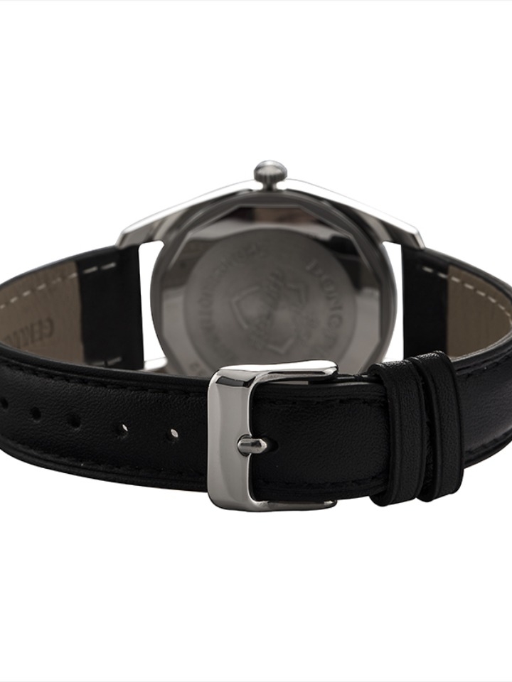 蓝宝石镜面防划耐磨,优异材质,真皮表带,佩带舒适。双按式蝴蝶表扣坚固耐用 ,大开面表盘精雕细琢的绘画和黑色指针,简洁典雅与大表盘一气呵成。