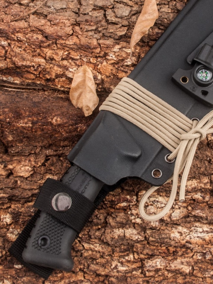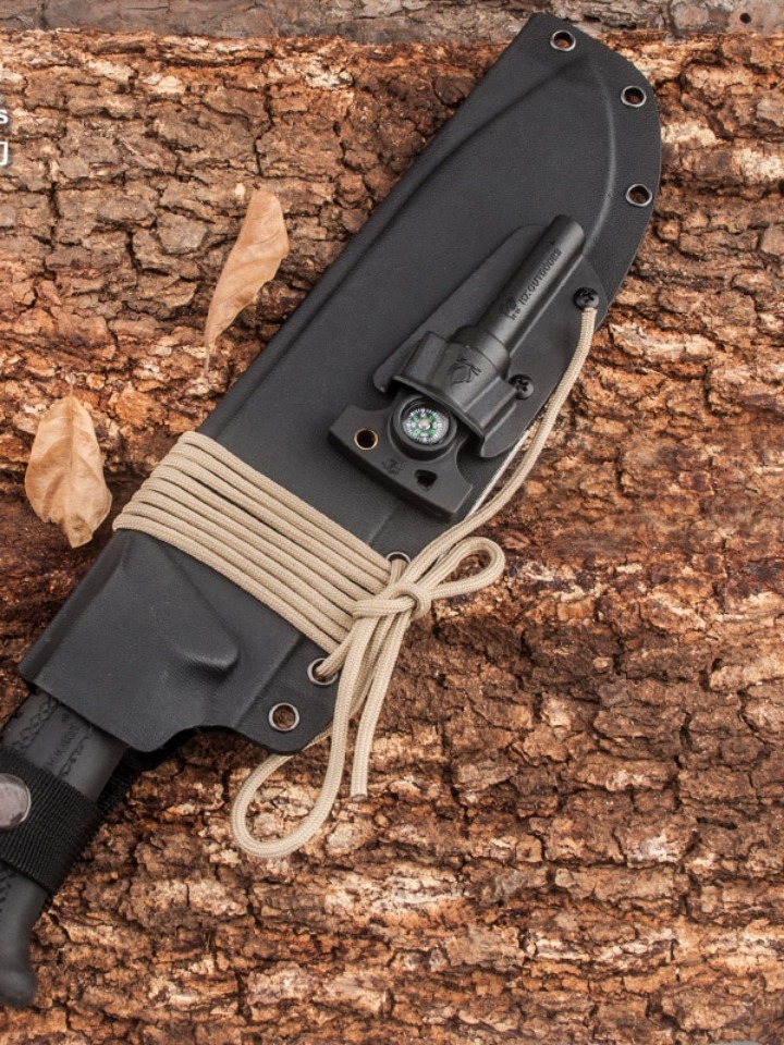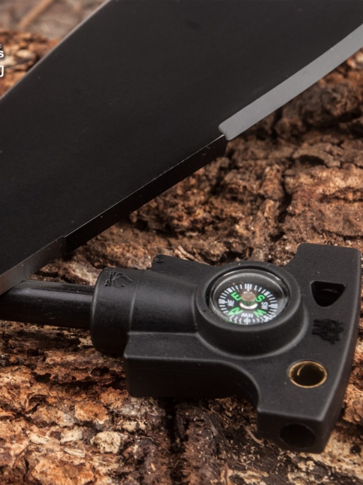 一款轻巧便携的户外求生军刀,其刀刃选用440C不锈钢材质,坚硬锋利,防锈抗腐蚀;人体工学手柄则采用K10碳纤维材料,防滑耐磨,握持感佳;并带有开瓶器、锯齿刀、穿绳孔等多种功能。