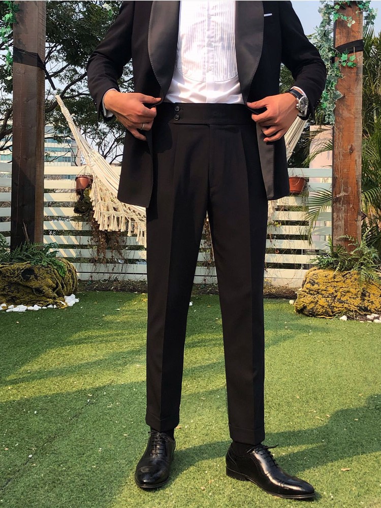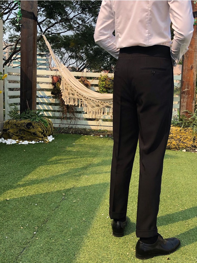 高腰的设计,拉长腿部线条,显瘦效果很好,高腰的版型,很显高挑,修身的剪裁,修饰腿部曲线,上身很有范。