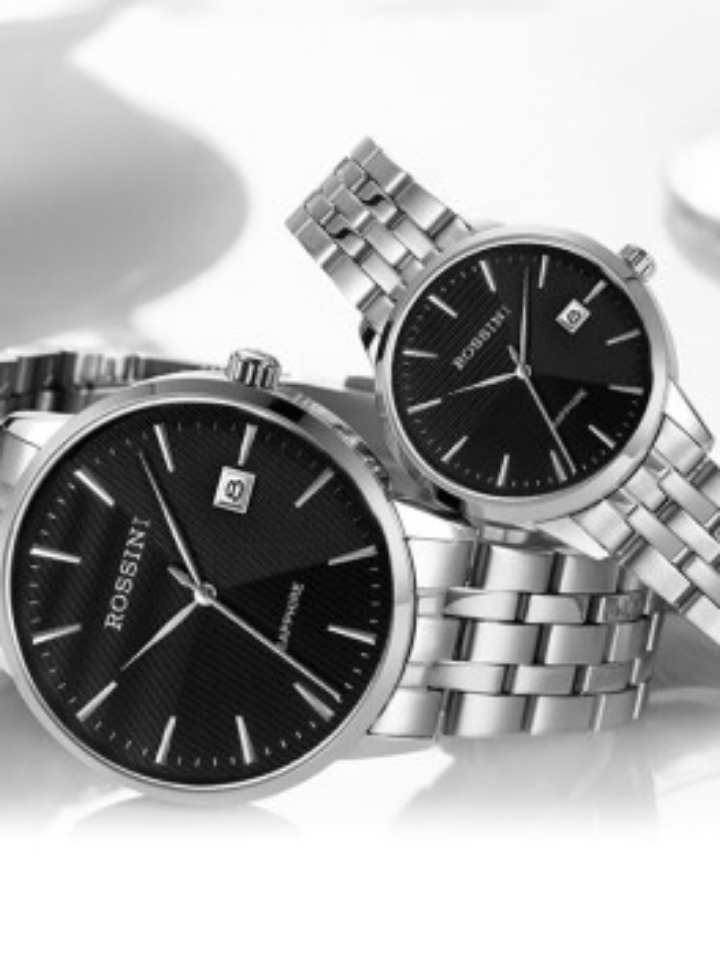 表盘设计呈现轻薄简约风格;幼砂纹清爽表盘、经典剑形指针、立体光面字钉,衬托极致轻薄视觉