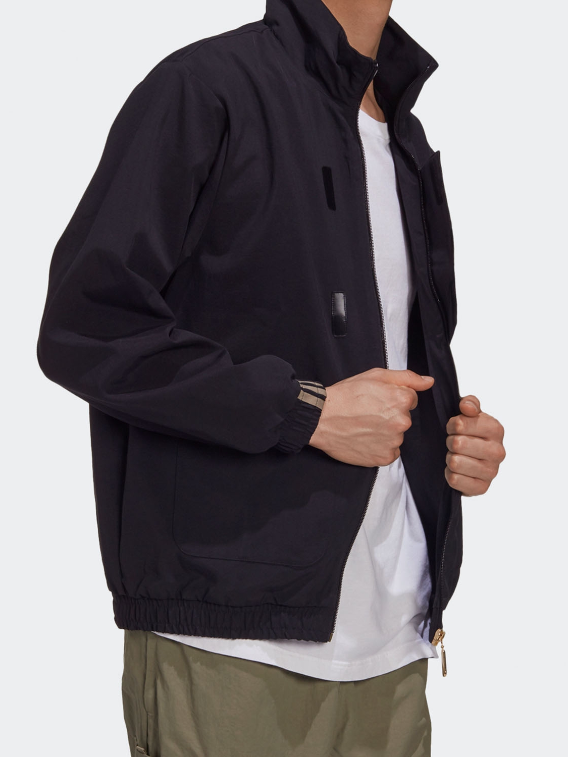 肩处撞色条纹的点缀,打破原本的单调,为整体带来更多的吸睛力,袖口处收紧的造型,紧贴手腕肌肤,能够起到更好的防风作用。