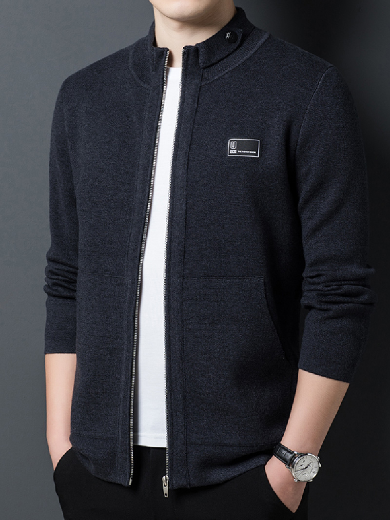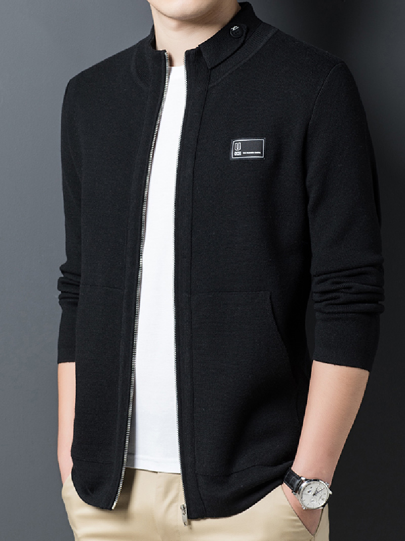 将设计感融入基本款针织开衫,粗棒针罗纹织纹。不对称拉链门襟和无领的设计,让其别致出众,镶边口袋,长袖。