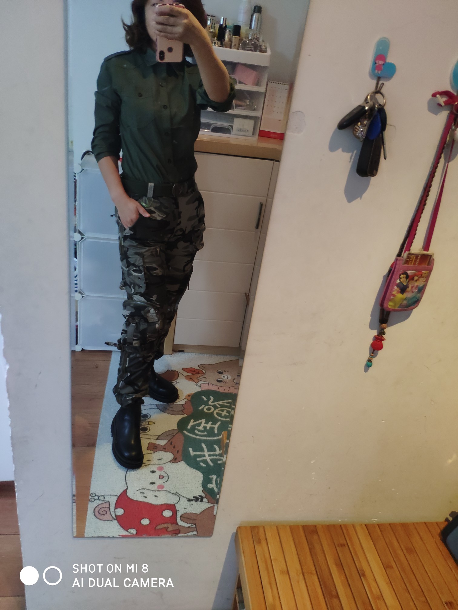 高腰的设计,拉长腿部线条,显瘦效果很好,高腰的版型,很显高挑,修身的剪裁,修饰腿部曲线,上身很有范。