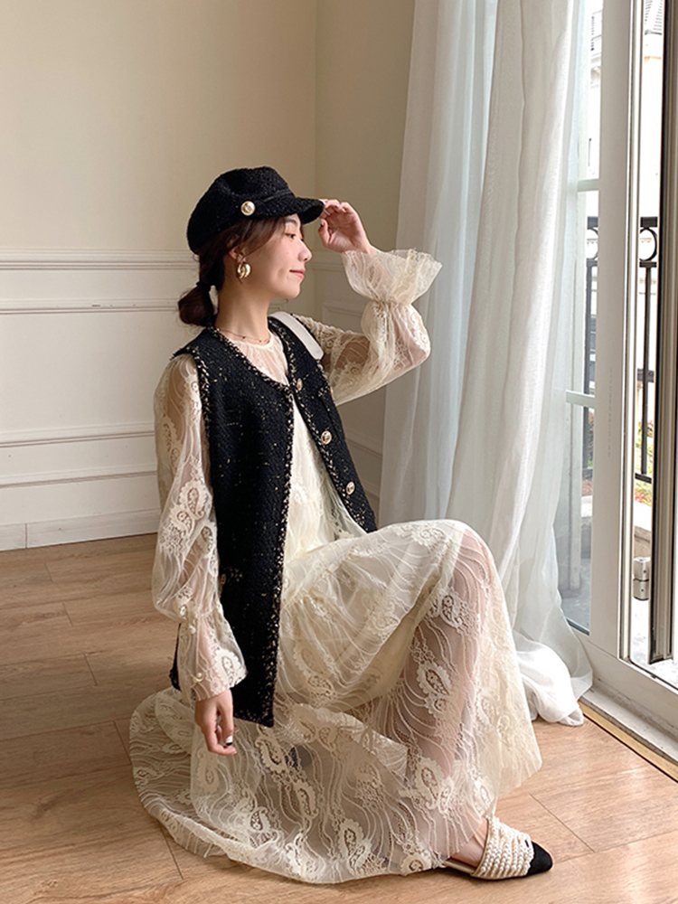 不规则的裙摆,和简短外套的搭配,金属纽扣的设计搭配磨毛镶边的装饰,是今年的流行款式。