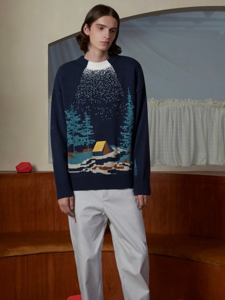 bosie的这款印花毛衣,采用了质感柔韧的面料,含有绵羊毛的材质,带来温柔保暖的性能,上身起到更好的御寒效果。