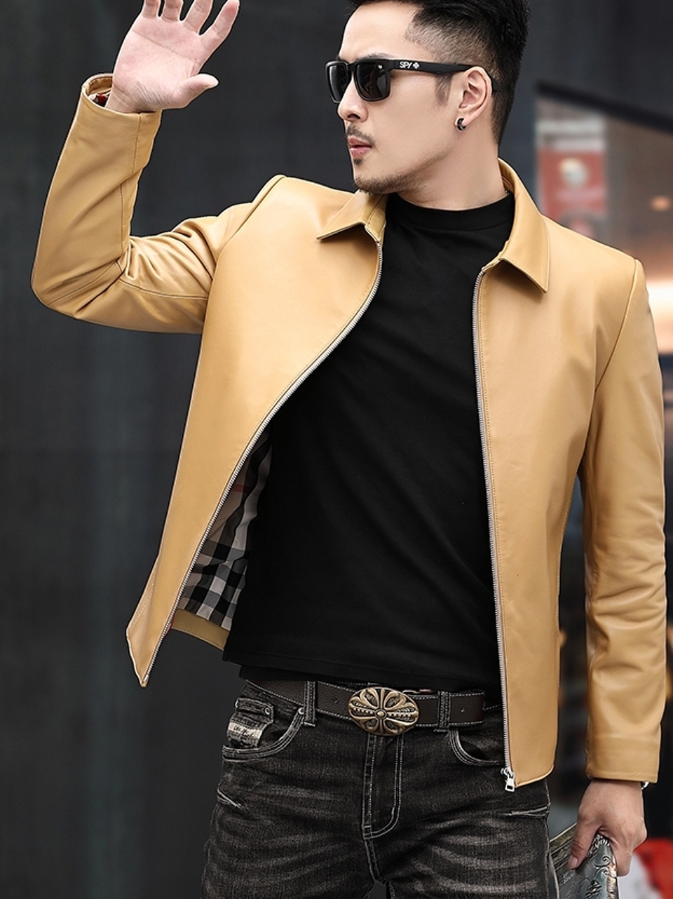 本款男士皮衣采用高档绵羊皮制作,顶级品质,经久耐穿。国际品牌首选里料,细腻柔软,舒适透气,垂感挺括。合体剪裁,使肩部不受约束,不挑身材。