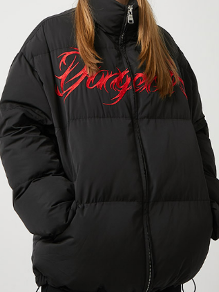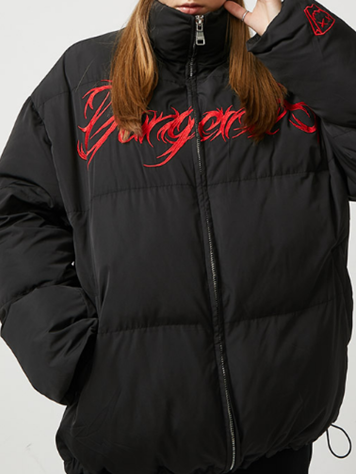 清新可爱的保暖外套,经典黑白两款色系,加以绣花元素的点缀,让厚实的棉服也有了灵动可爱的气息,立领盘口的设计增加个性特点。