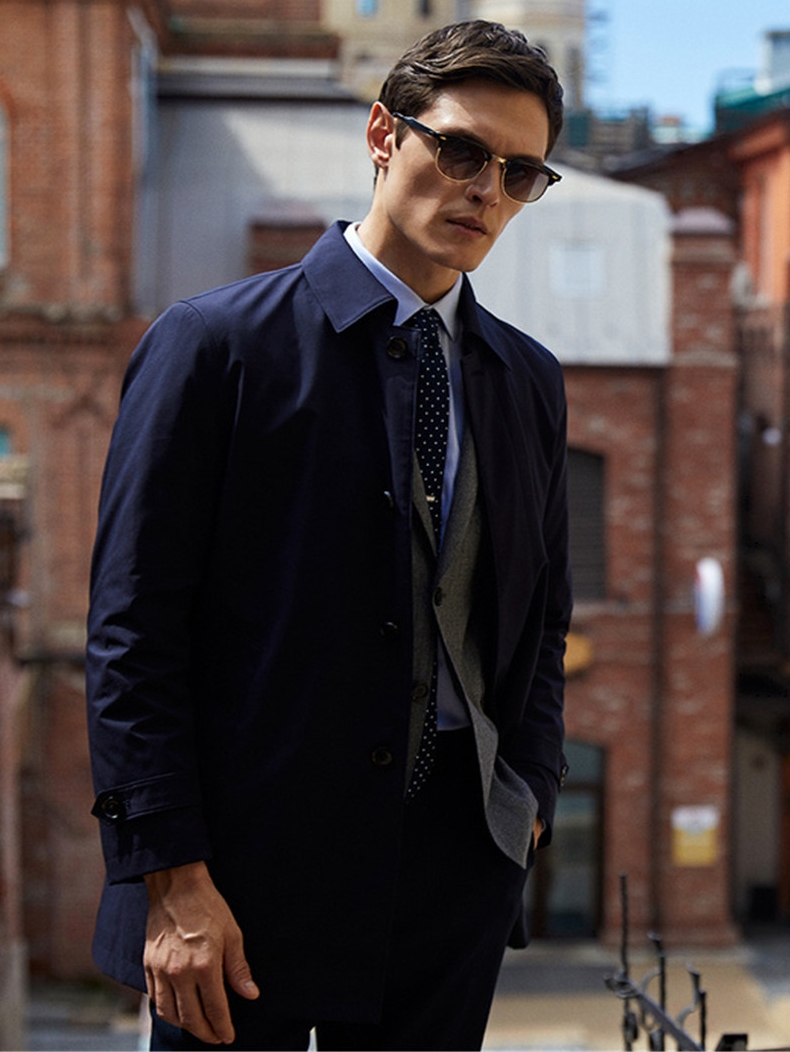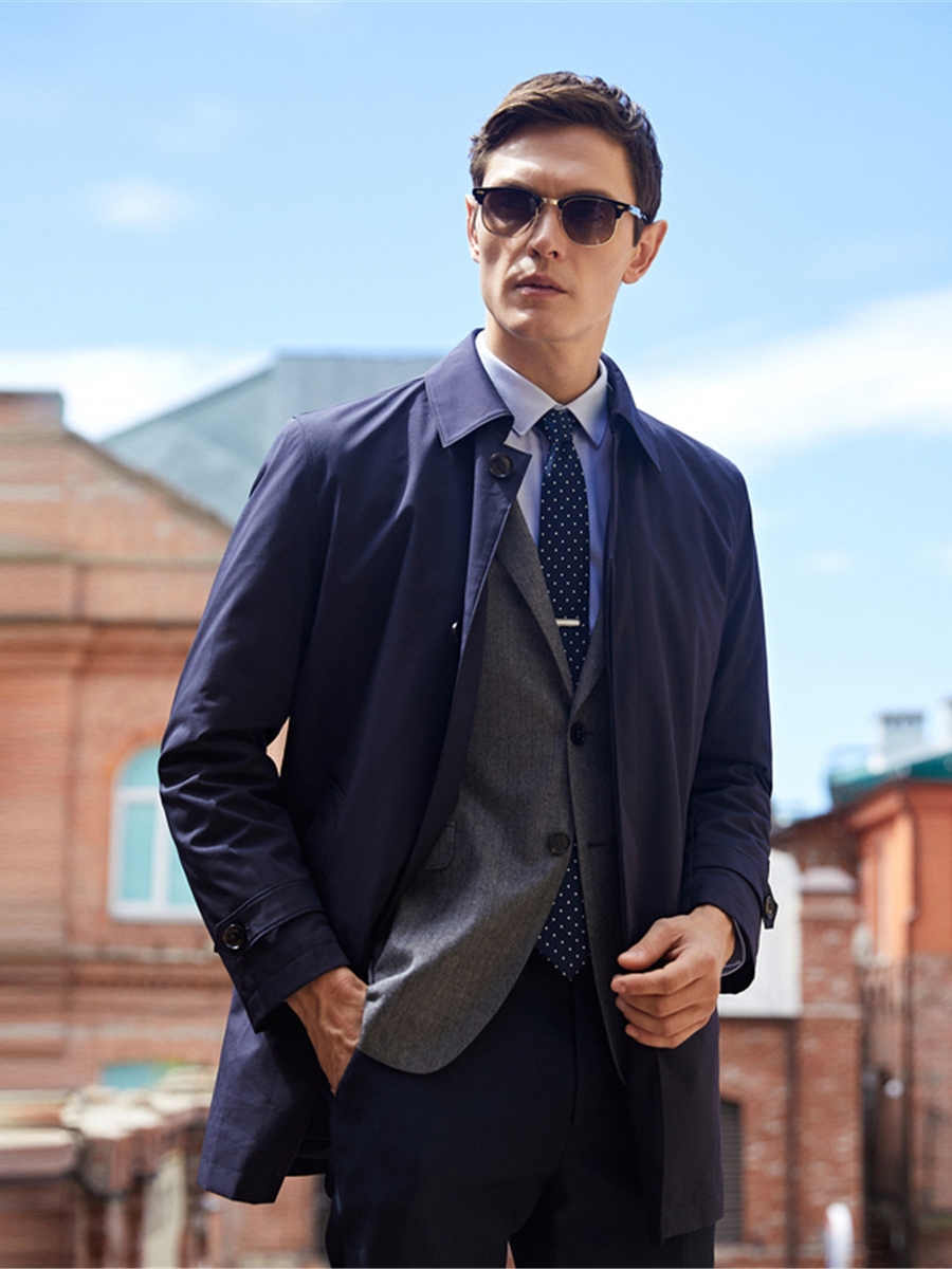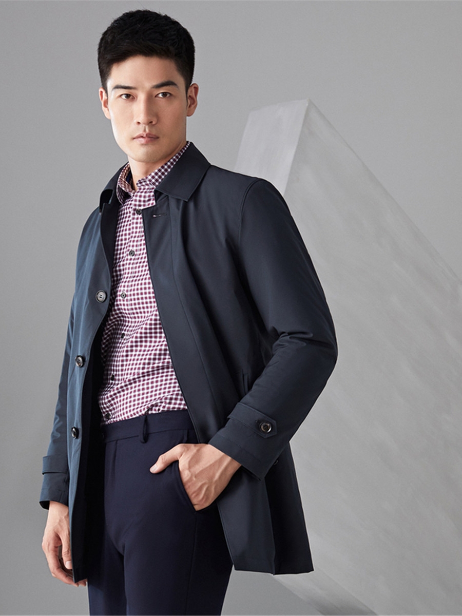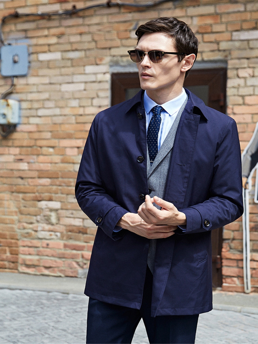 肩部坚挺,器宇轩昂,经典翻领,时尚大方,上乘材质,特质纽扣,完美包边,做工精湛。