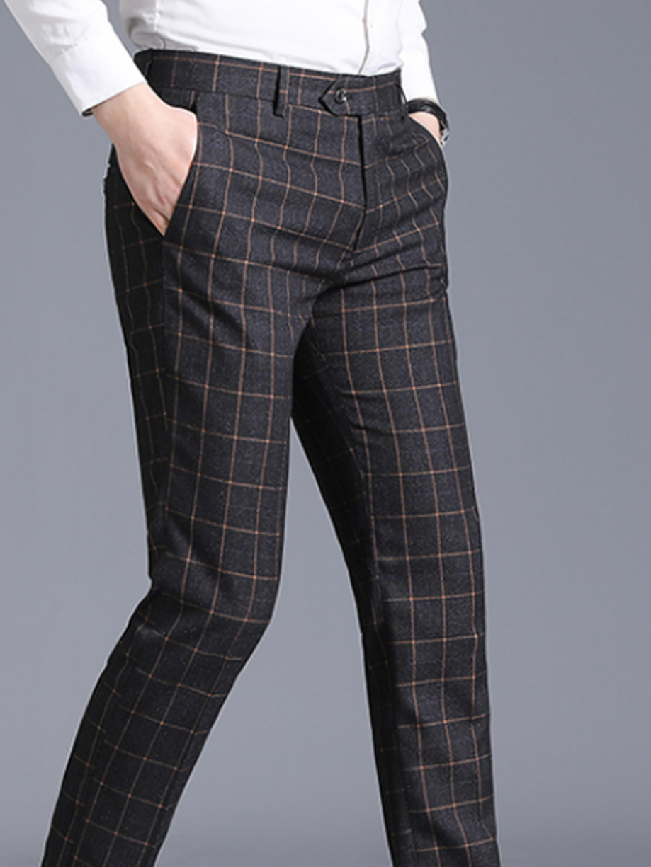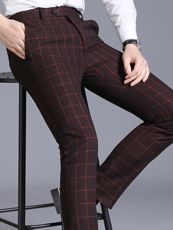 英伦风十足的男装长裤,采用格子元素搭配上休闲风十足的版型设计,凸显型男们的潮流时尚感,精细的做工彰显高端品质,小脚裤型简约休闲,优质面料加上修身的版型设计,舒适透气方便穿脱。