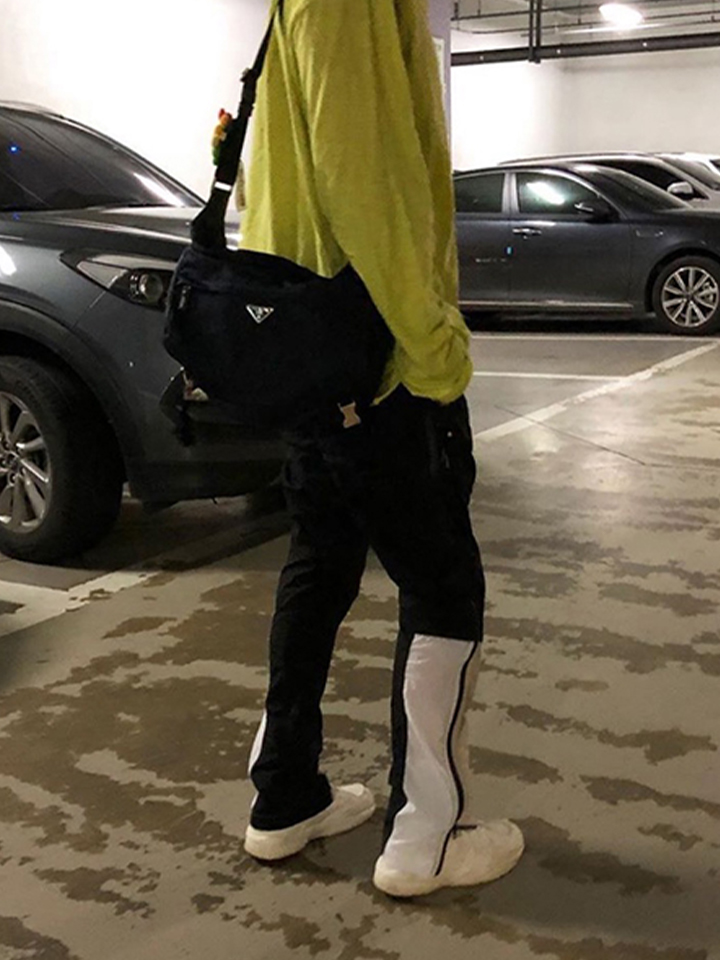 一款充满休闲时尚风格的拼接工装裤,宽松年轻又潮流。