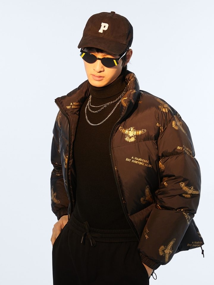 简约不简单的短款款式,衣身菱形格子固定羽绒,不跑毛,棒球衫式羽绒服,上身干练利落,下身搭配牛仔裤青春有活力。