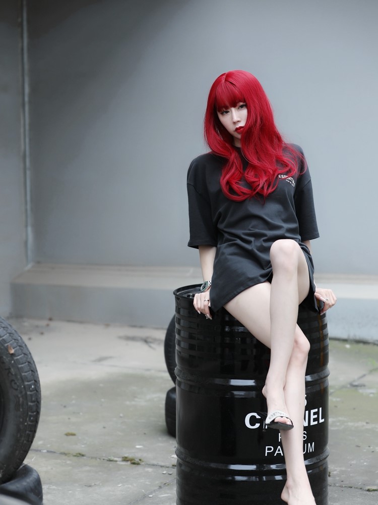 高腰的设计,拉长腿部线条,显瘦效果很好,高腰的版型,很显高挑,修身的剪裁,修饰腿部曲线,上身很有范。