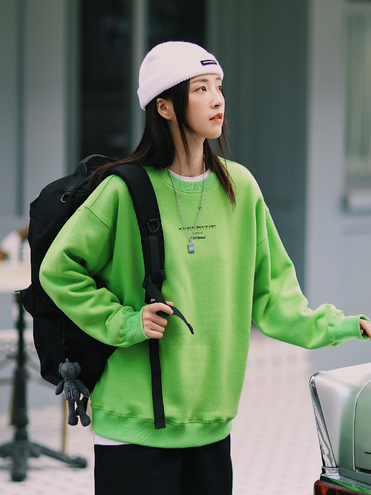 圆形的领口为颈部带来更舒适的空间,避免紧勒感。套头的设计增添休闲随性,简约的版型男女都可穿着,彰显情侣甜蜜。