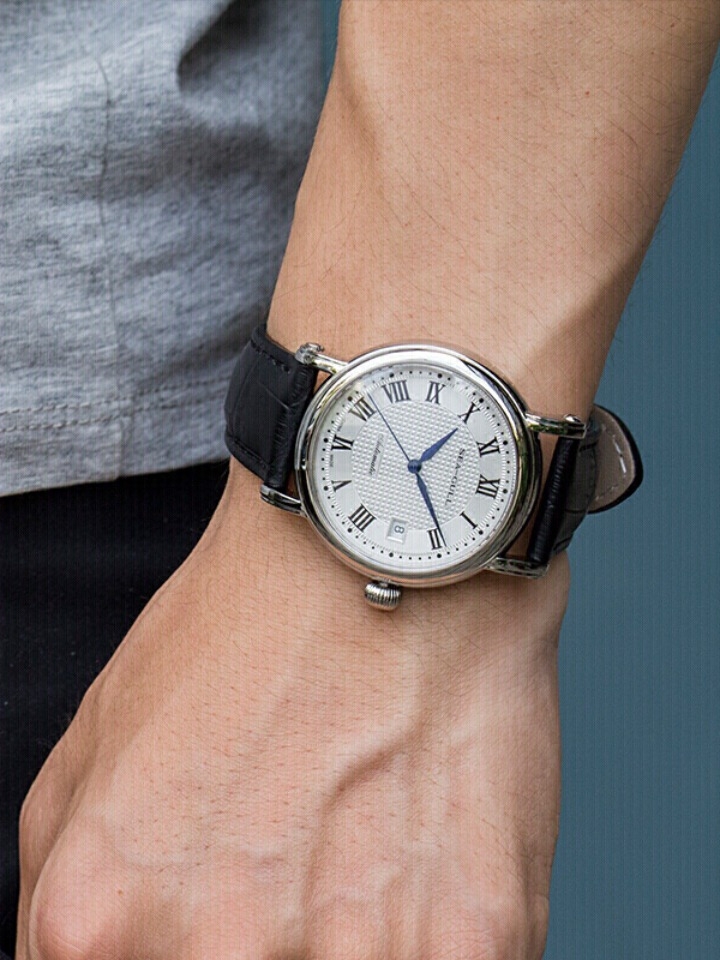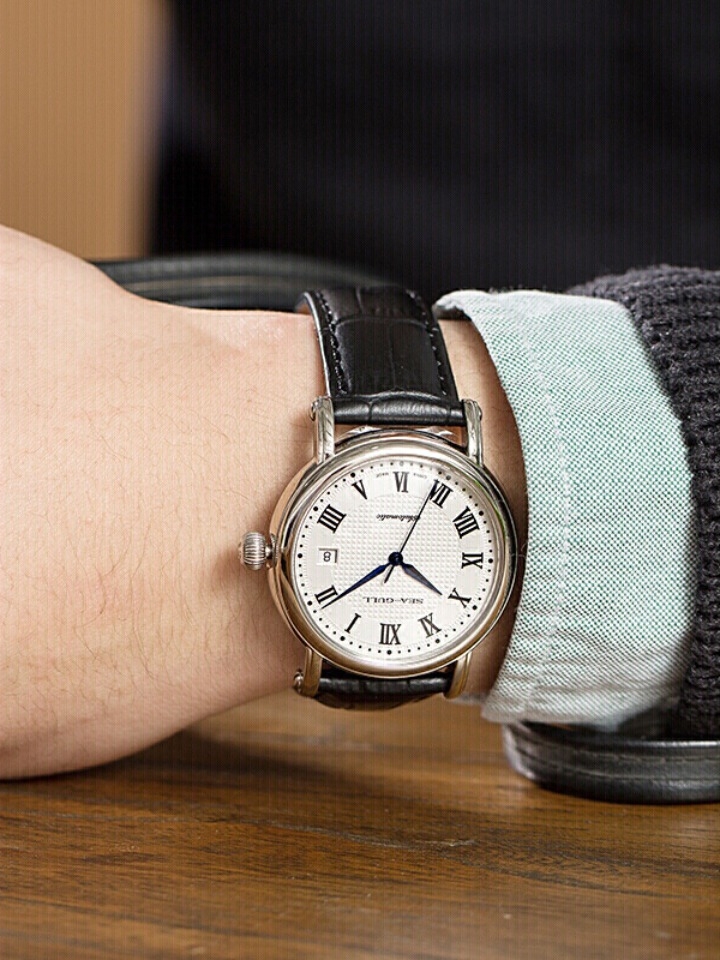 选用人工合成蓝宝石材质表镜,光滑闪亮,赋予你更为清晰的读时。经典圆形表盘,休闲时尚,也让手表显得富有活力。真皮材质表带,丰富整体造型,佩戴更显质感。