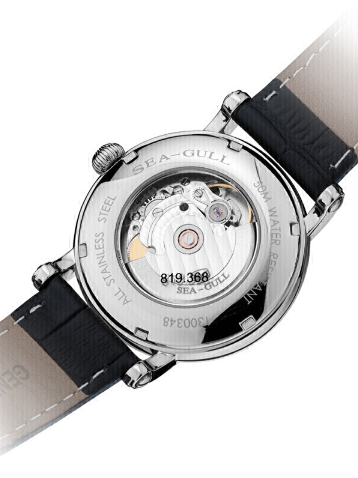 商务机械手表,圆润的镜面设计,内置镂空的表盘机芯,丰富立体层次,让整体更显律动。人工合成的蓝宝石表镜,有效的防止炫光,让看时更加的精准无误。