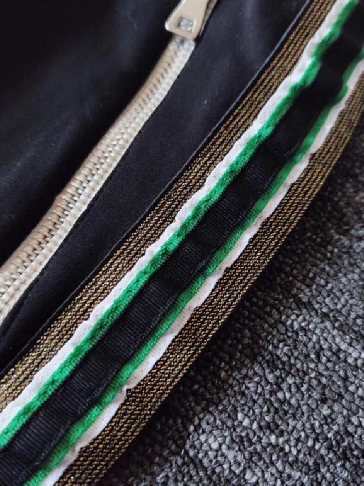 小直筒的裤型,侧边的撞色螺纹织带,加入了运动感。选用细腻柔软的毛呢,舒适度非常好。搭配小白鞋就很有型。
