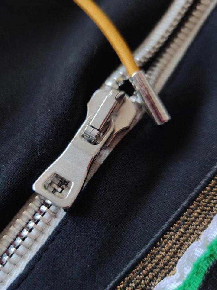 有没有感觉肩部撞色的黑色织带好像小把戏,其实就只是单纯为了有趣,撞色线形成假口袋的造型,消除了冬天的沉闷,就连撞色的纽扣也是这么的用心。