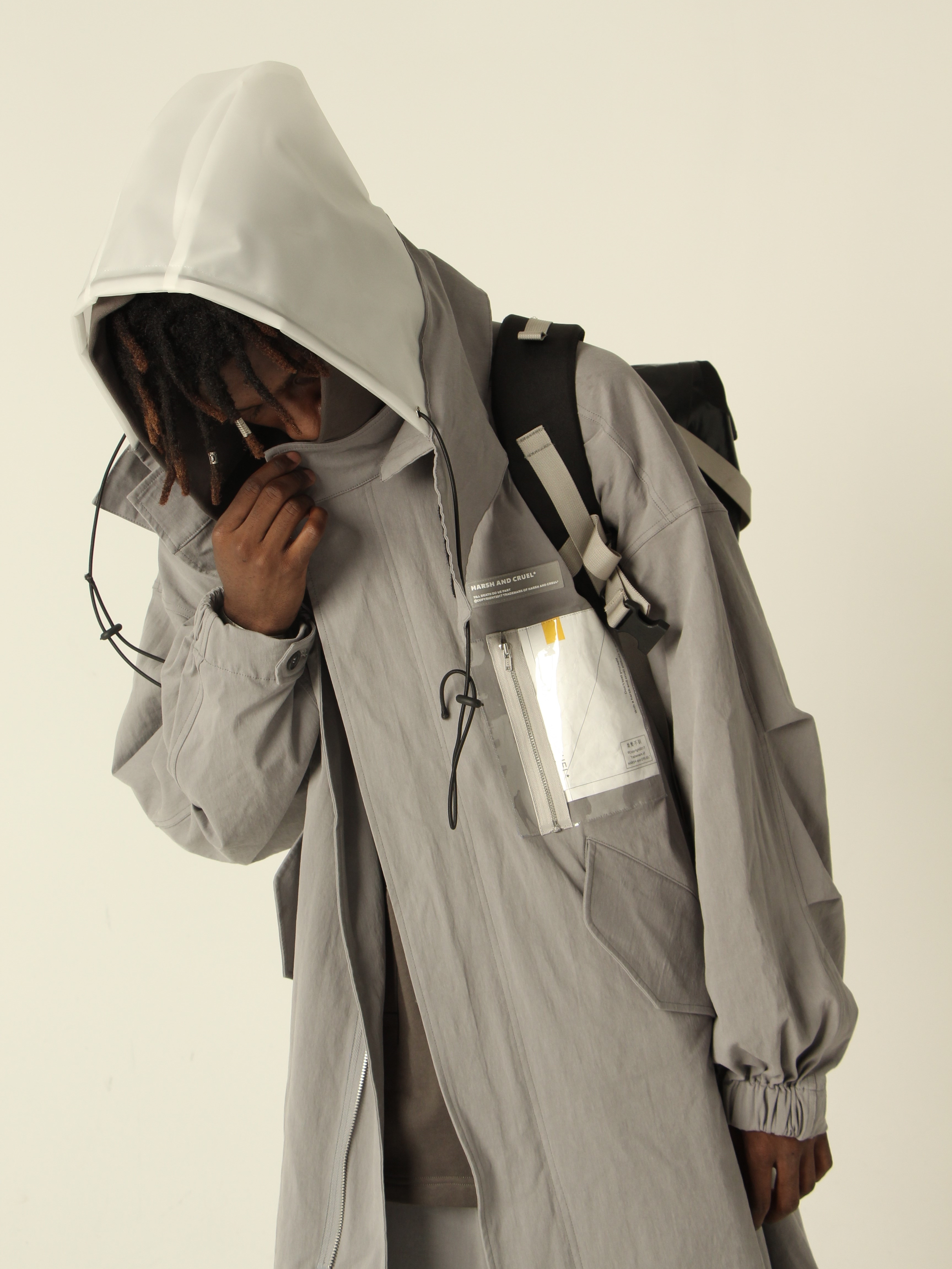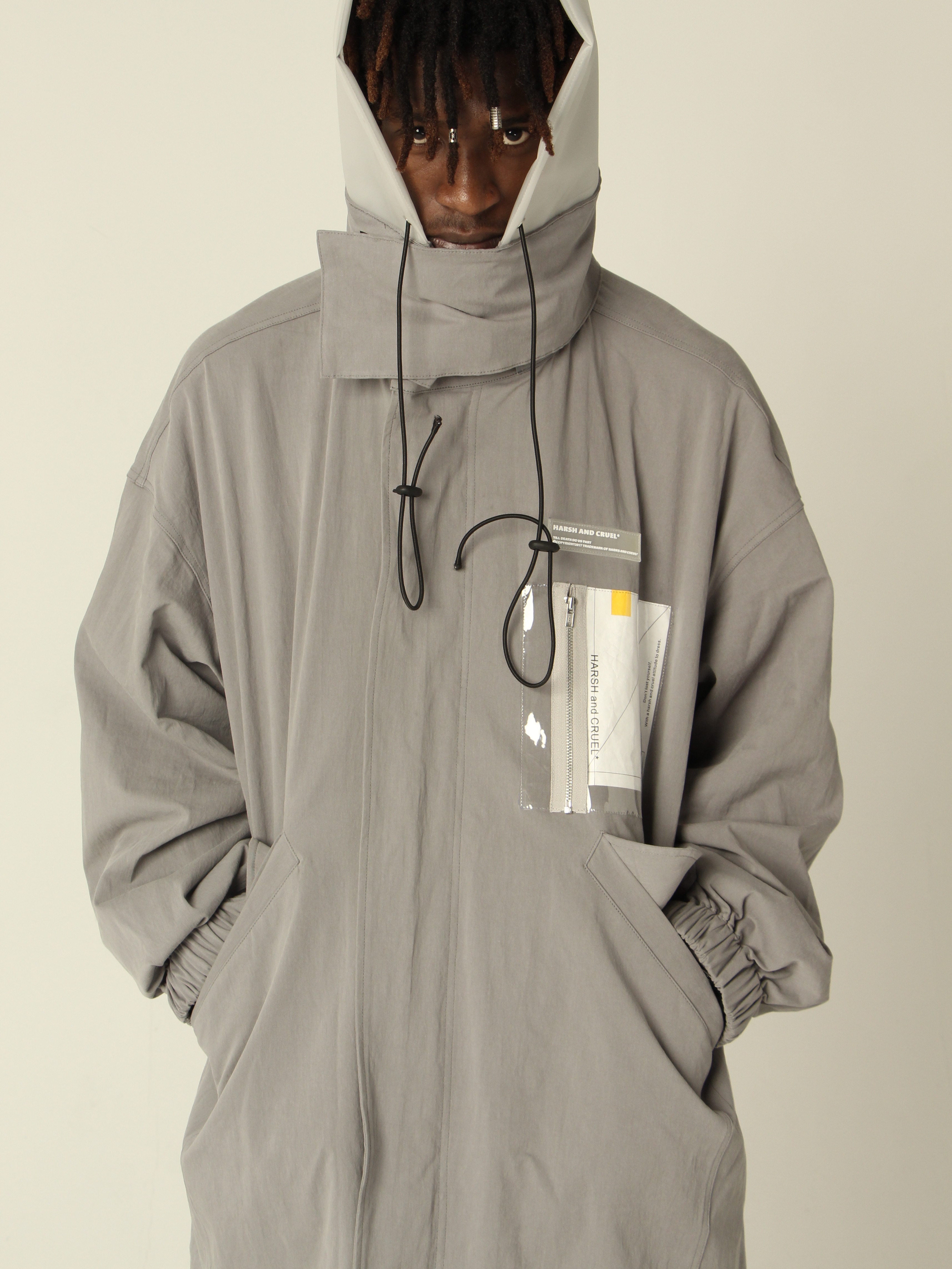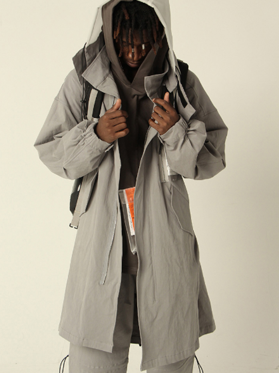 衣身采用中长款的版型设计,搭配连帽的样式,起到防风保暖的作用;后下摆处燕尾的剪裁,给予舒适自如的穿着体验;衣前两个 口袋的设计,趣味方便,增添衣身的层次效果。